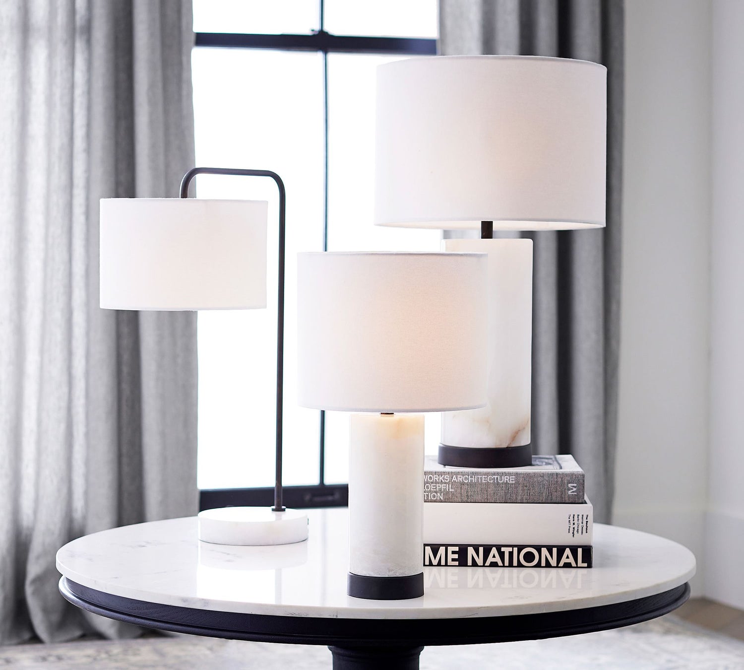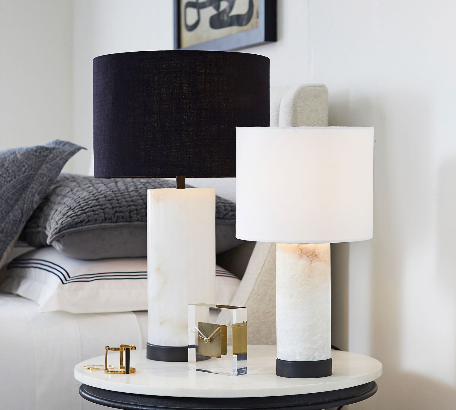 Alabaster Table Lamp | White Marble Base with Linen Shade