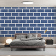 This blue brick wallpaper presents a refined take on urban architecture, featuring meticulously detailed bricks in a rich navy-blue shade against crisp white grout lines. The geometric precision of the modern brick pattern wallpaper creates a sophisticated rhythm across the wall, while the deep blue coloring adds depth and contemporary elegance to the design.