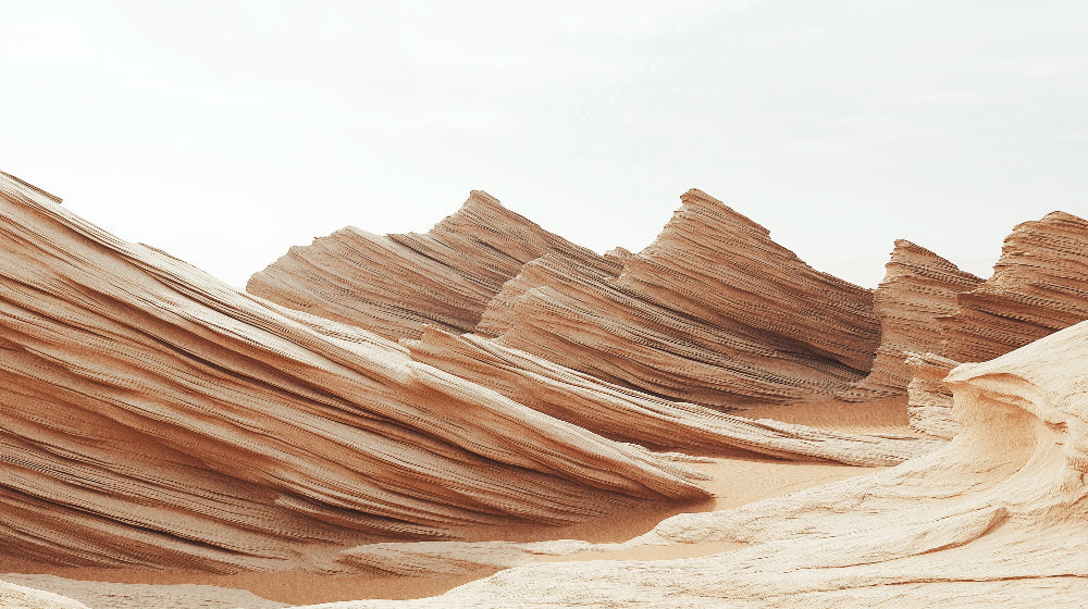 Transform your space with this modern desert mural that brings the peaceful essence of untamed landscapes indoors. The neutral color palette makes it versatile enough to complement various interior styles, from contemporary to minimalist designs. This geological formation wallpaper adds depth and movement to your walls while creating a sense of serene grandeur that makes any room feel more expansive and grounded in natural beauty.