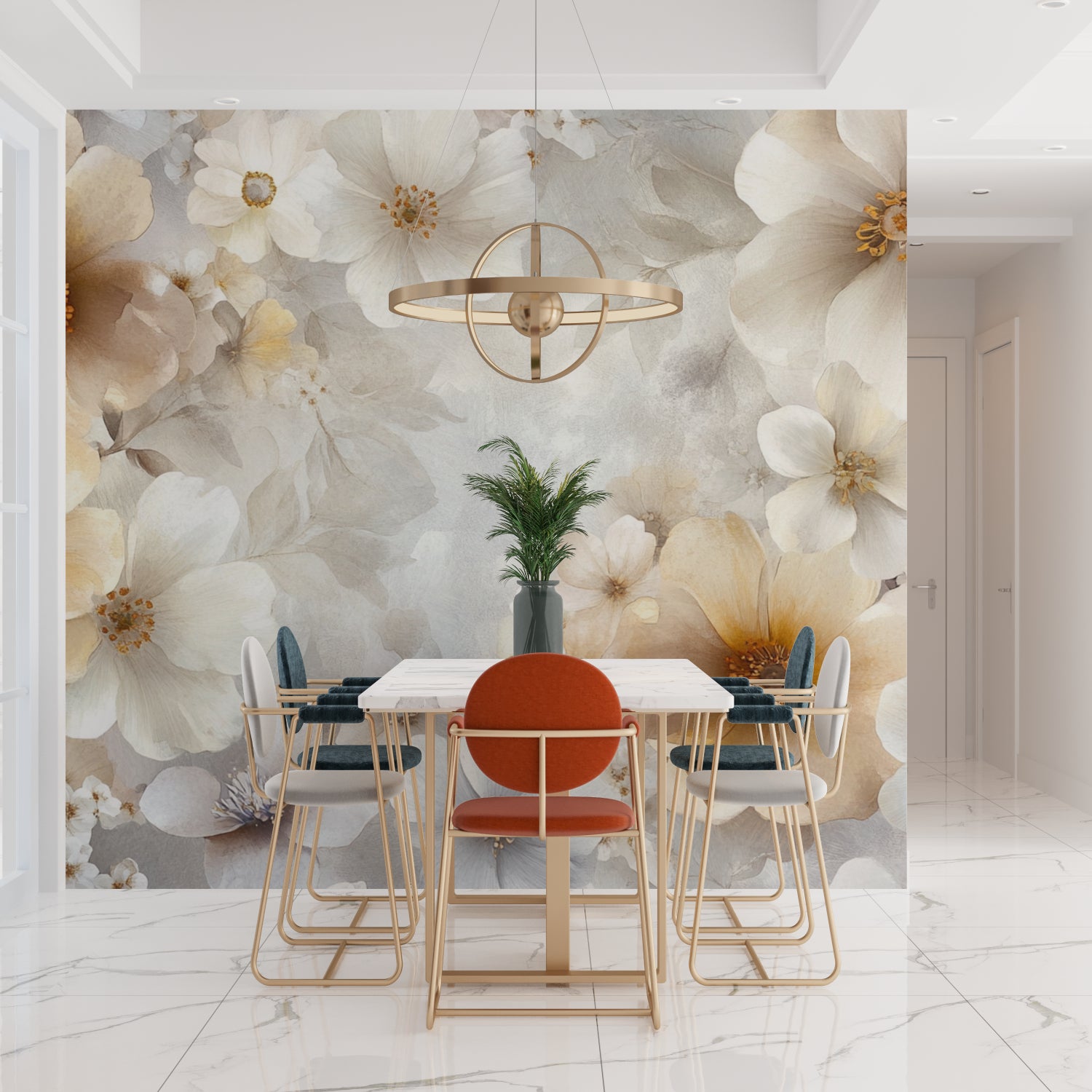 Transform your space with this sophisticated floral wallpaper that brings an air of refined tranquility to any interior. The neutral floral design works harmoniously with various décor styles, from contemporary to classic, creating a serene backdrop that enhances the room's natural light and spatial flow. Its soft color palette and artistic execution make it an ideal choice for creating a calming, upscale atmosphere that elevates the entire space.