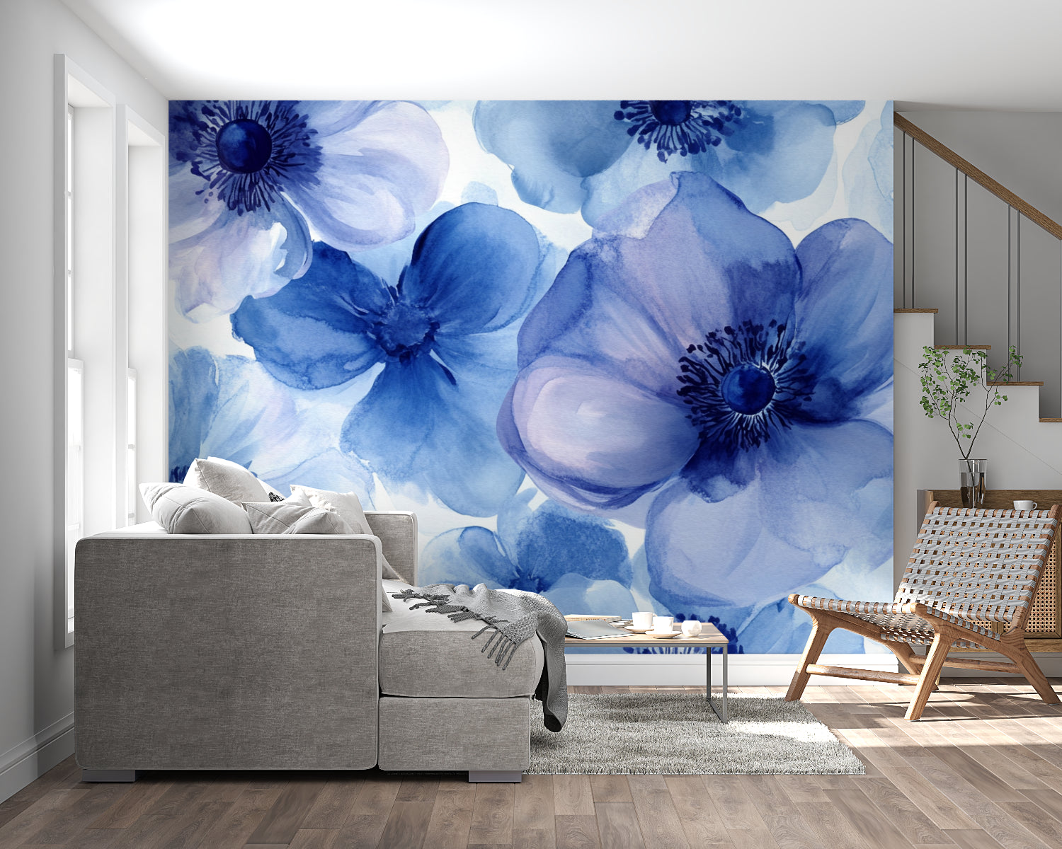 Floral Mural Wallpaper | Watercolor Blue Anemone Design