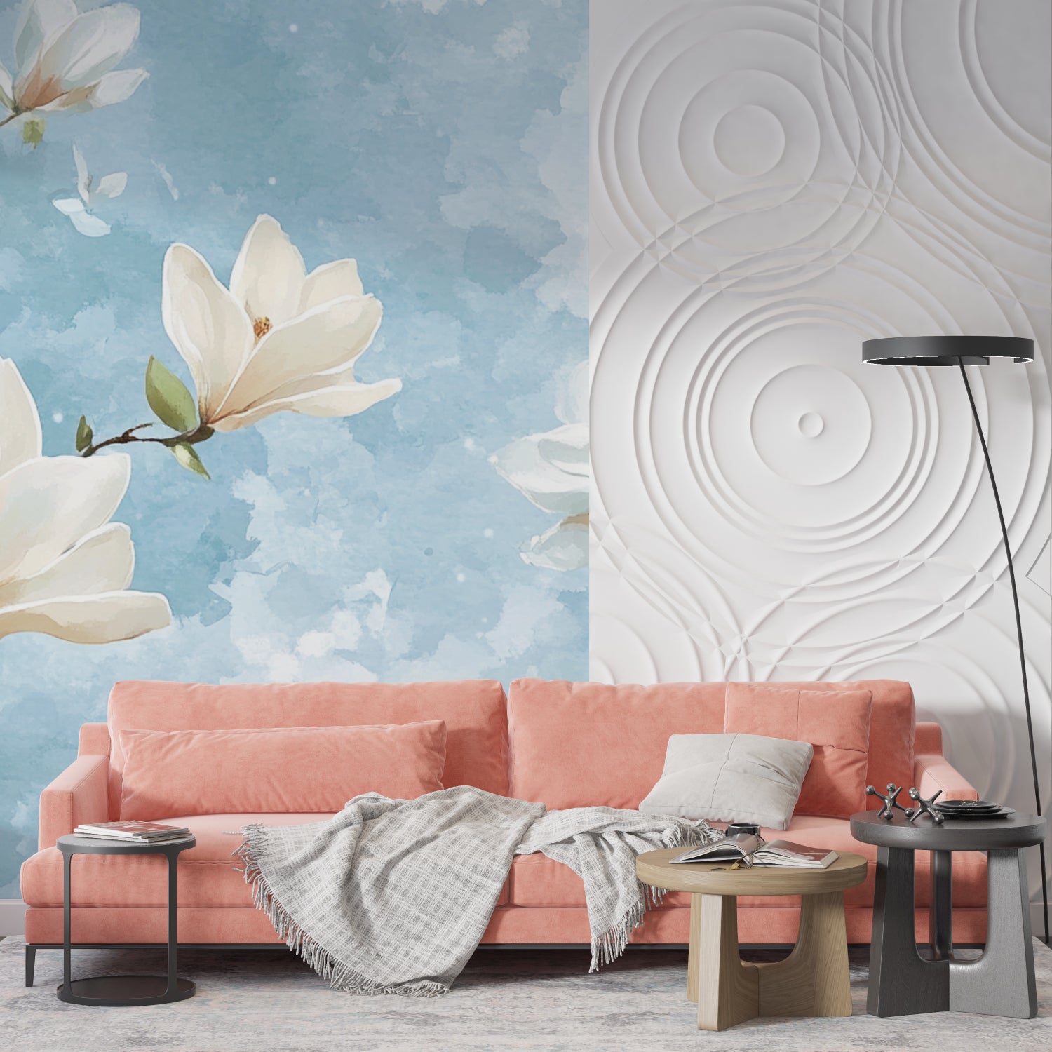 This watercolor magnolia mural transforms spaces with gentle elegance.