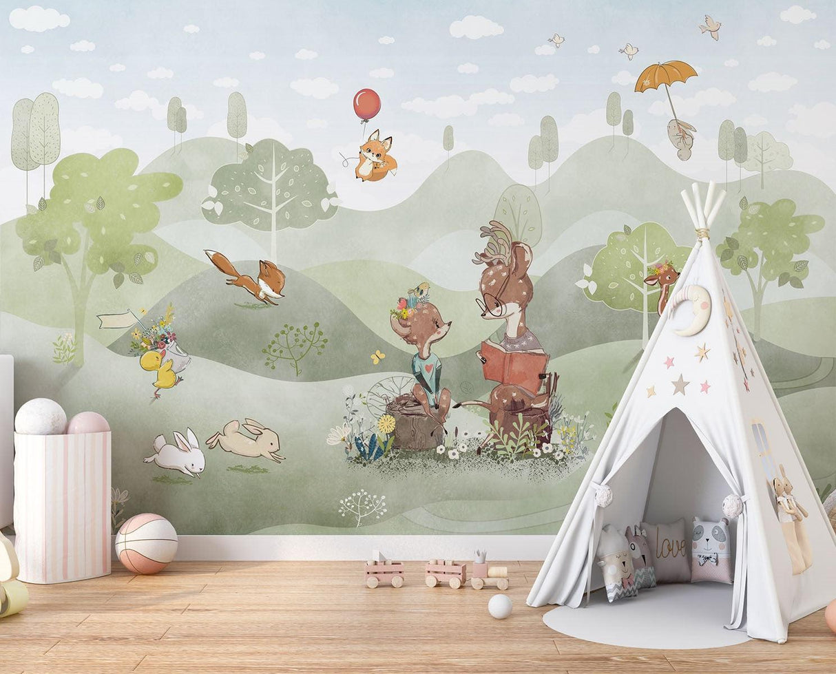 Forest Animals Mural Wallpaper | Whimsical Woodland Adventure Scene