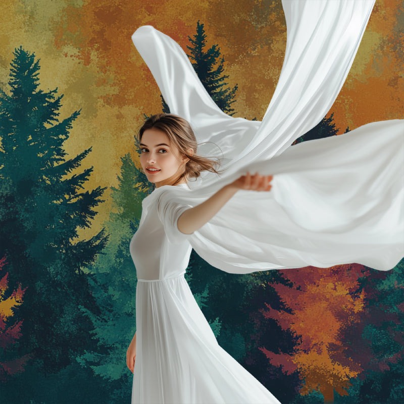 The golden sunset tones create a warm, welcoming feel in your forest themed interior.