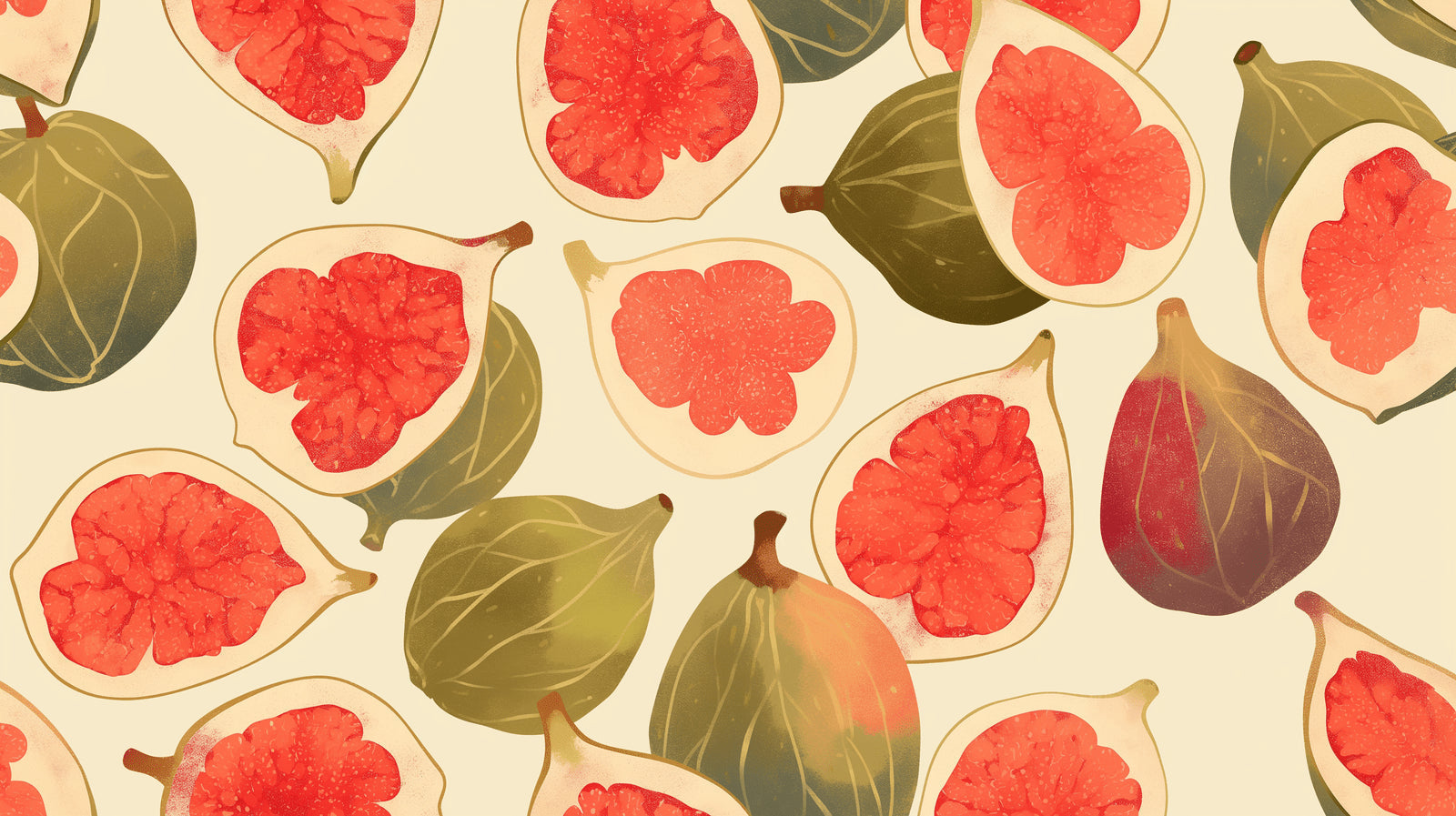 This Mediterranean fig wallpaper showcases a stunning artistic interpretation of fresh figs in their most appealing form. The large-scale pattern features both whole and halved figs, revealing their luscious coral-red interiors against olive-green exteriors. The sophisticated beige background creates a warm, neutral canvas that allows the fruit wall mural to make a bold yet elegant statement, while maintaining a sense of natural harmony and balance.