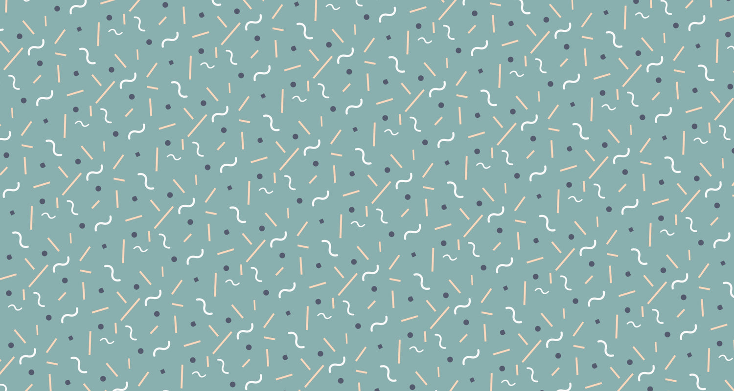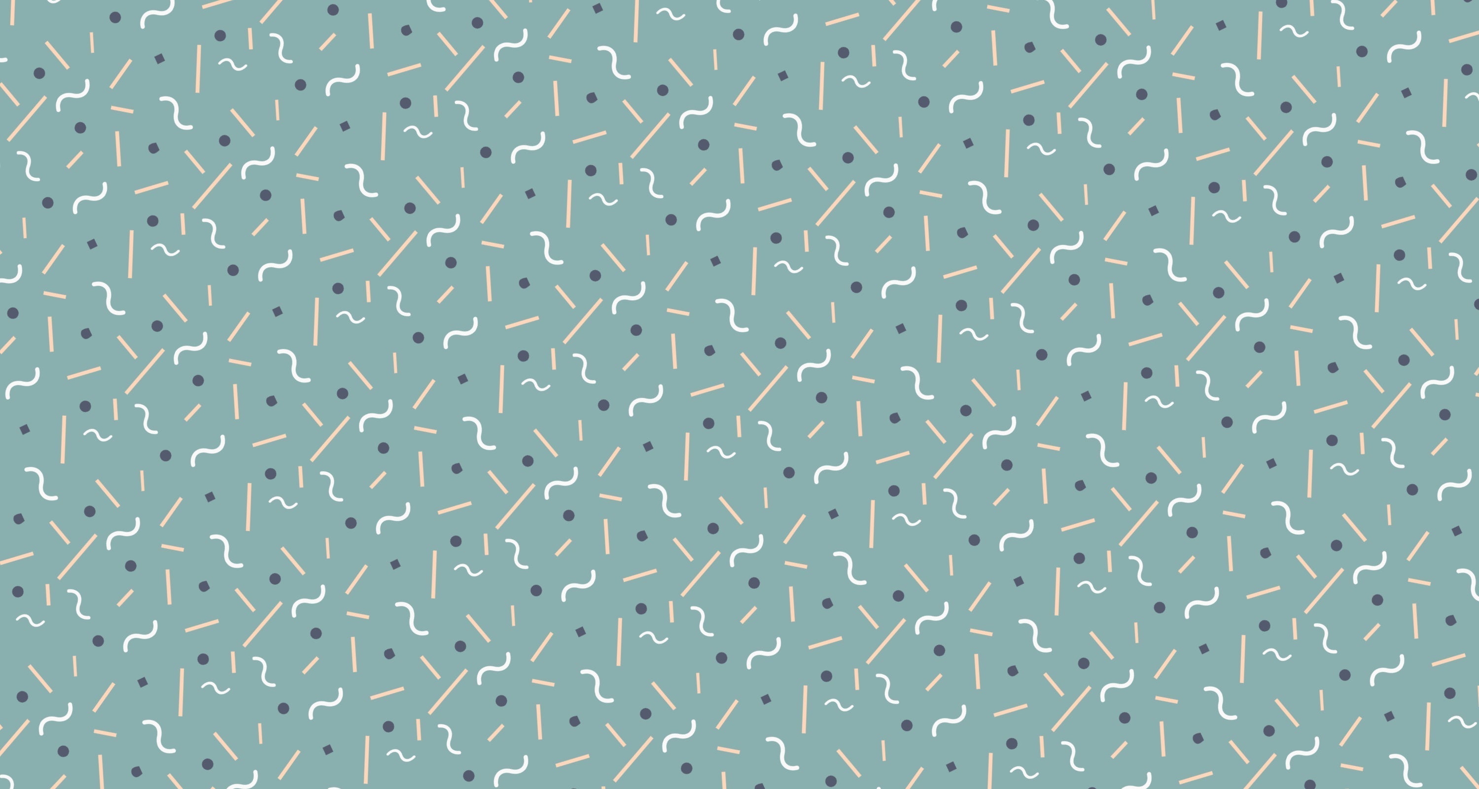 This geometric pattern wallpaper showcases a delightful composition of scattered lines, waves, and dots against a soothing sage-green backdrop. The thoughtfully arranged elements feature white wavy lines, peach-colored strokes, and navy dots, creating a modern abstract wallpaper that captures the essence of contemporary design while maintaining visual harmony and balance.