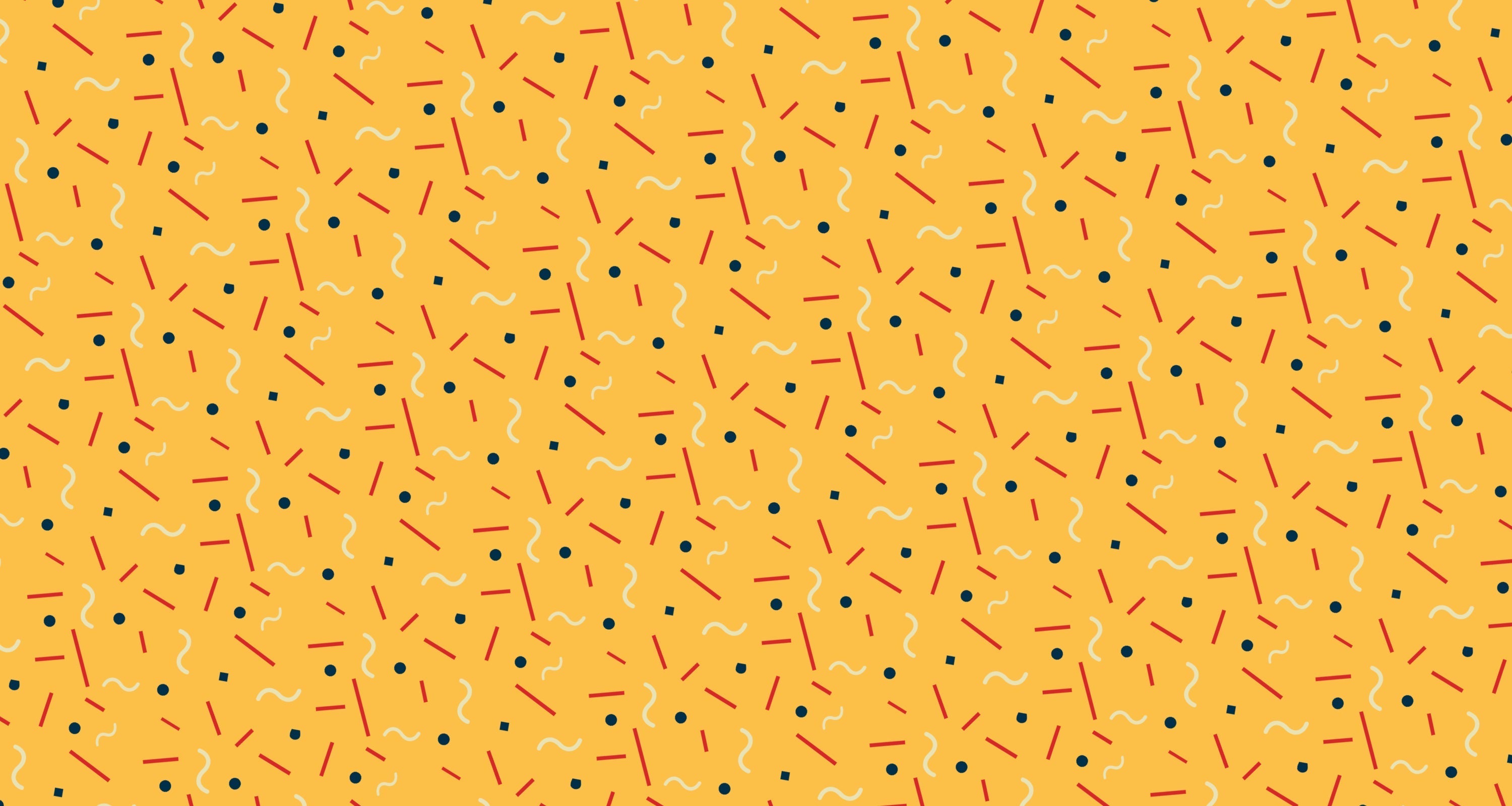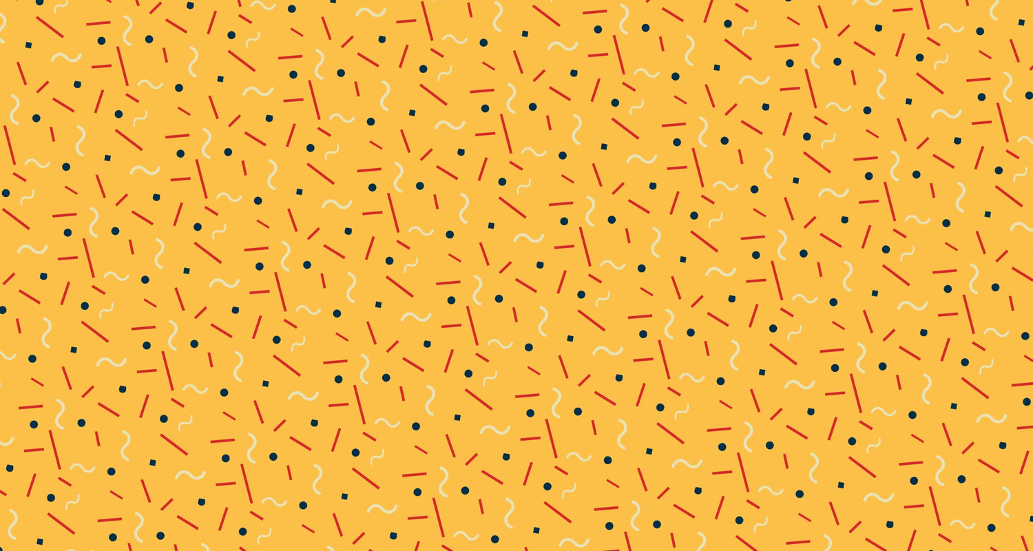 This geometric pattern wallpaper showcases a playful confetti-like design on a vibrant yellow backdrop. Red dashes, navy-blue dots, and white wavy lines dance across the surface in a perfectly balanced composition, creating a dynamic and modern abstract wall mural. The carefully distributed elements form a seamless pattern that brings rhythm and movement to the visual experience.