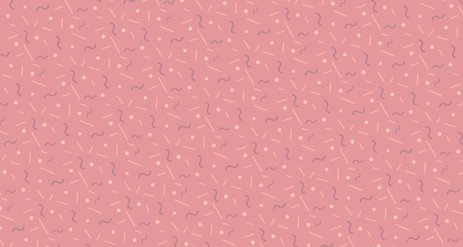 This geometric pattern wallpaper showcases a delightful play of shapes and lines on a soft-pink backdrop. Delicate beige lines, playful dots, and gentle purple waves create a mesmerizing Memphis style wallpaper that captures the essence of modern design. The rhythmic pattern brings movement and energy while maintaining an elegant, sophisticated atmosphere with its carefully balanced composition.