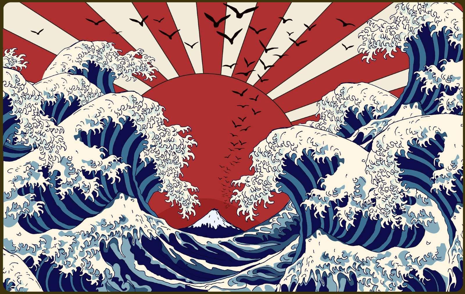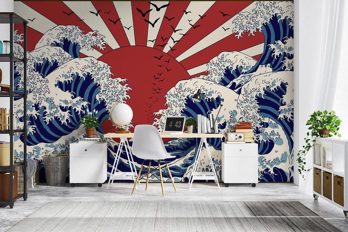 Japanese Mural Wallpaper | Great Wave and Red Sun Design