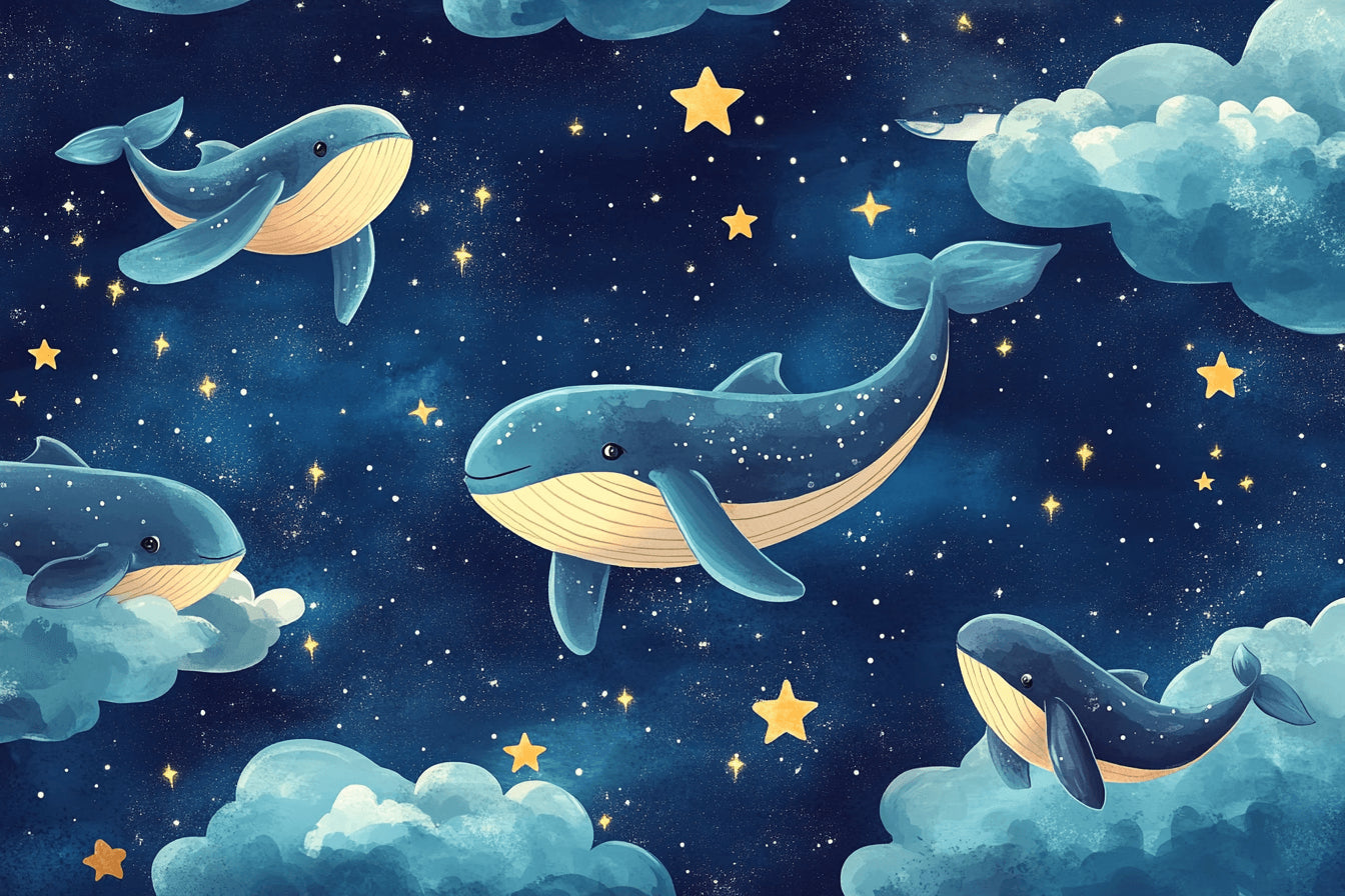 Marine Animals Mural Wallpaper | Whales in Starry Night Sky