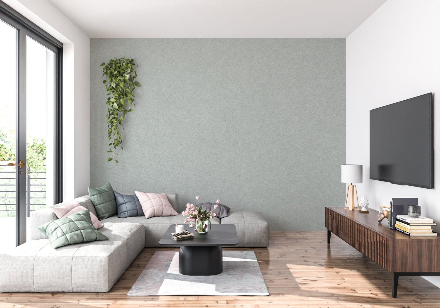 Our minimalist wall mural sets the perfect base for your decor.