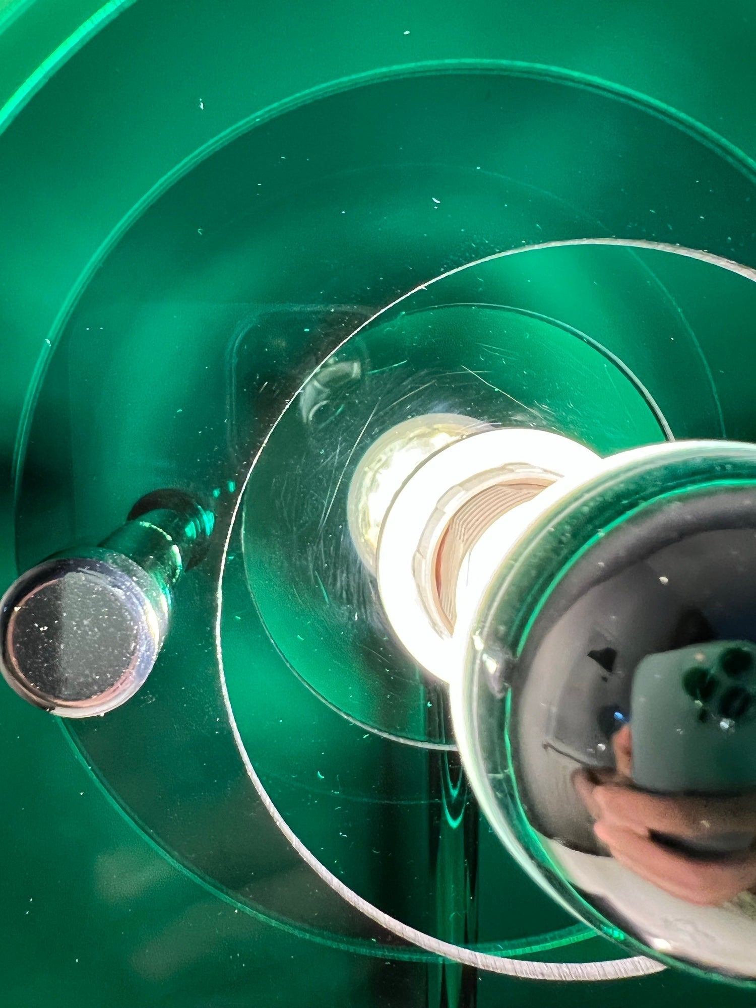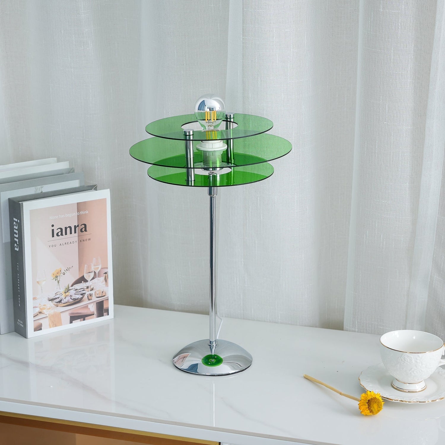 Modern Geometric Table Lamp | Orange Acrylic Disc Design - Green is backordered and will ship as soon as it is back in stock.