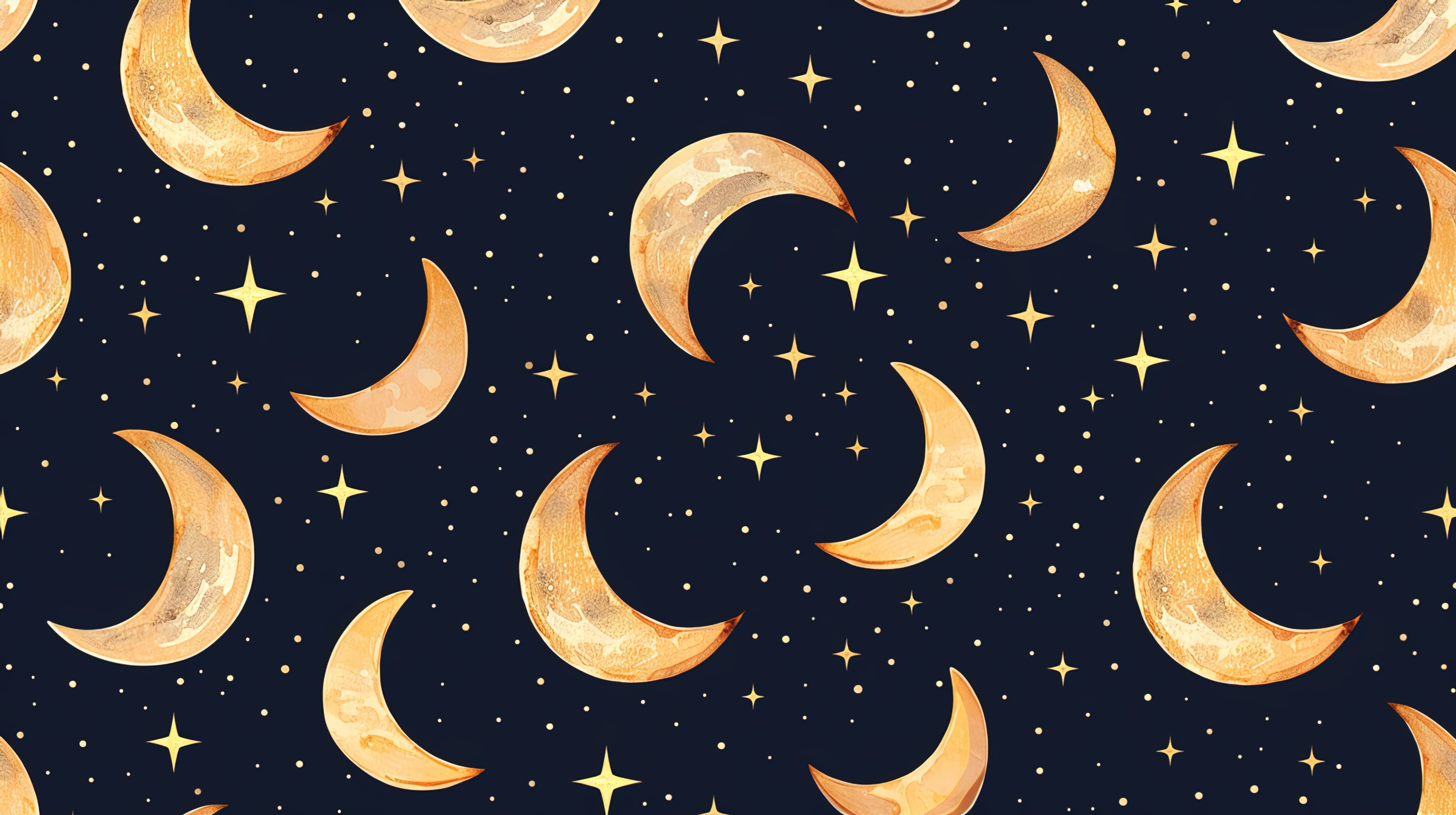 This enchanting celestial wallpaper creates a magical nightscape with golden crescent moons dancing across a deep navy-blue canvas. Each moon features delicate watercolor textures in warm amber hues, while brilliant star wall mural accents scatter throughout the design like diamond dust. The artful composition balances whimsical charm with sophisticated style, making this night sky wallpaper a captivating focal point.
