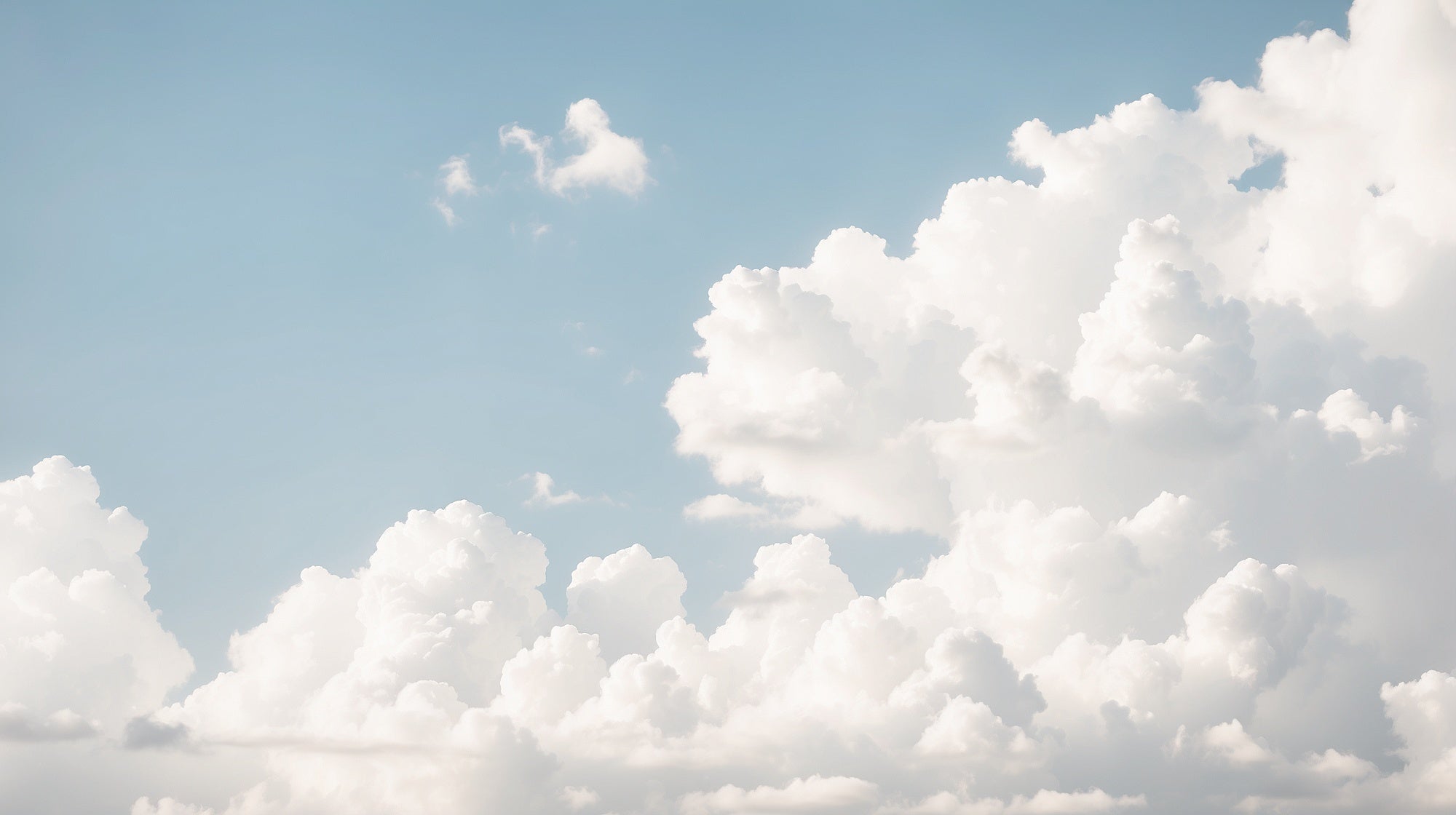 This cloud mural wallpaper captures the ethereal beauty of a serene summer sky, where pristine white clouds float against a soft powder-blue backdrop. Each cloud formation is rendered with photo-realistic detail, creating an immersive visual experience that brings the tranquility of nature indoors. The sky wallpaper mural features delicate light variations and subtle depth that make the clouds appear remarkably three-dimensional.