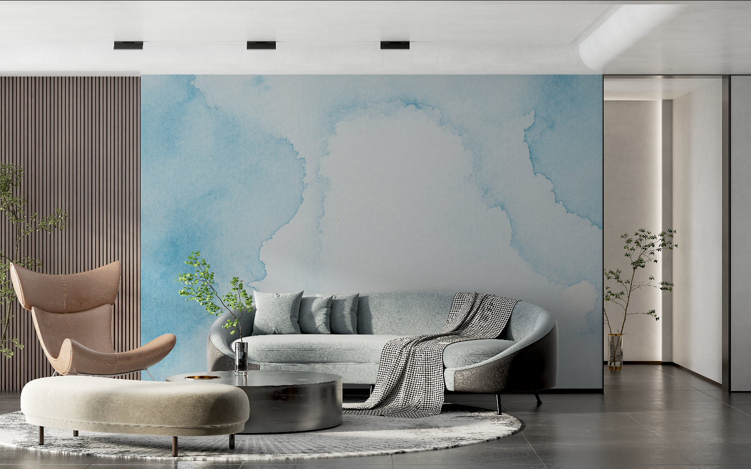 Transform your interior into an open, airy sanctuary with this watercolor sky wallpaper. The soft, luminous quality of the blue cloud wallpaper expands visual boundaries while infusing spaces with natural light and tranquility. Whether installed in living areas, bedrooms, or professional environments, this design introduces an element of sky-inspired serenity that elevates the entire atmosphere.