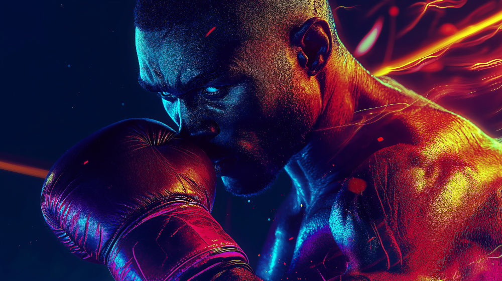 Sports Mural Wallpaper | Dynamic Boxing Art in Neon Colors
