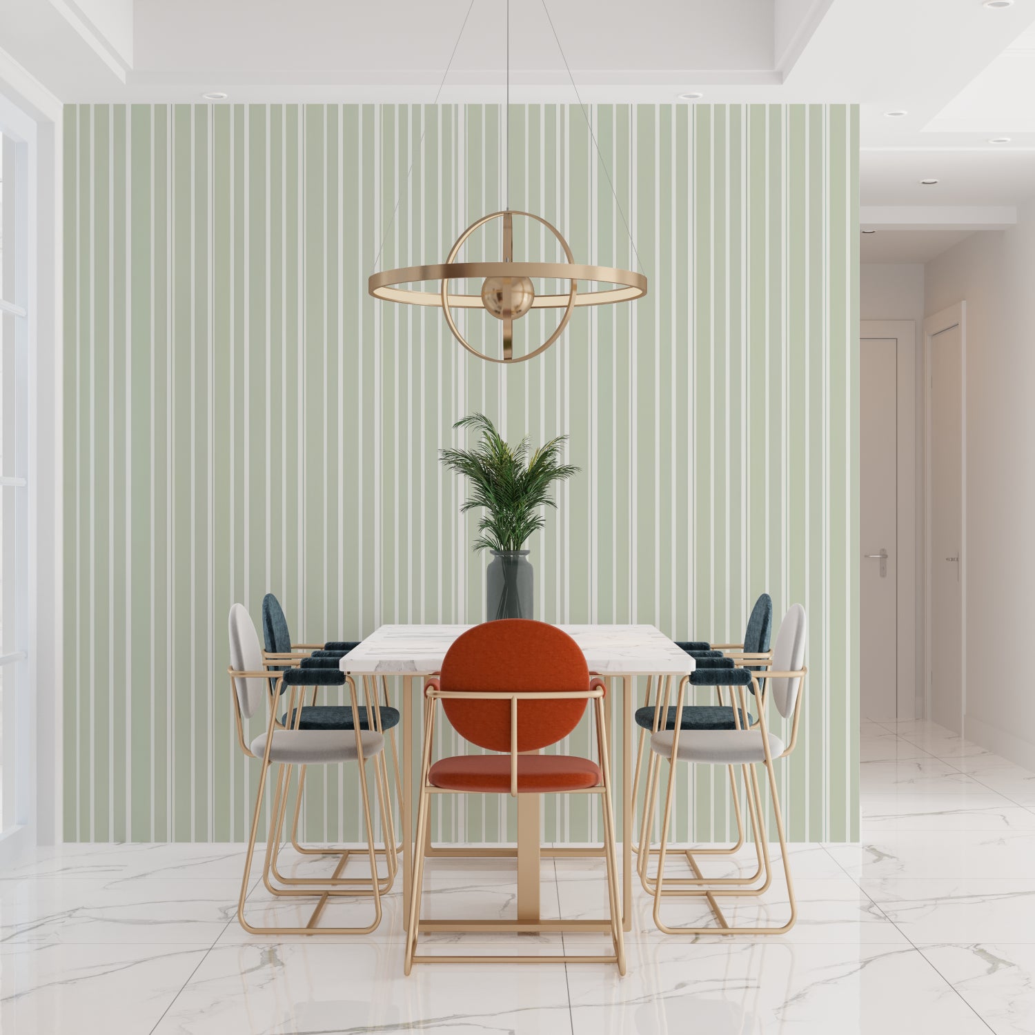 This vertical striped wallpaper lifts your eyes up and expands room perception.