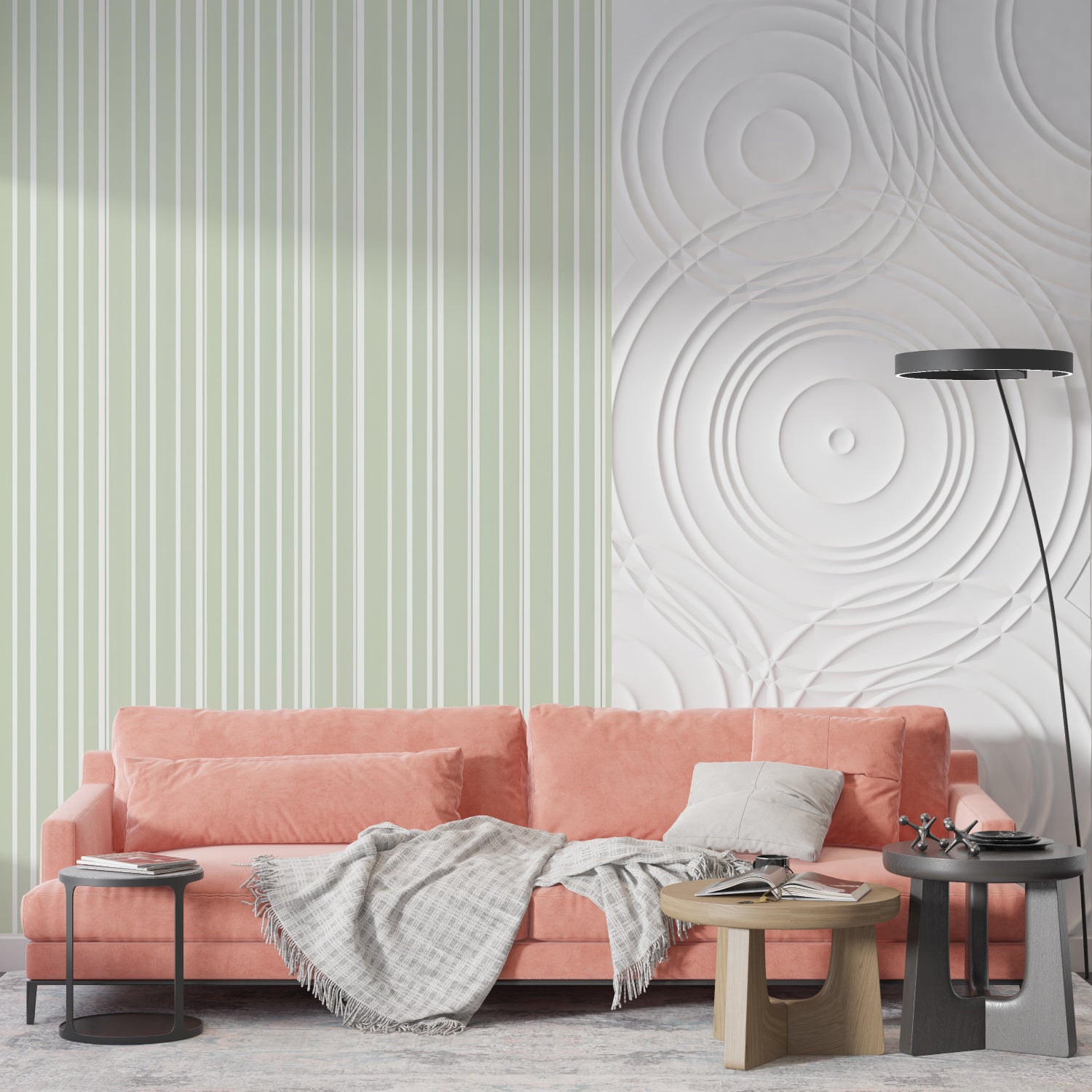 The modern stripe design creates a soft, balanced backdrop for daily life.