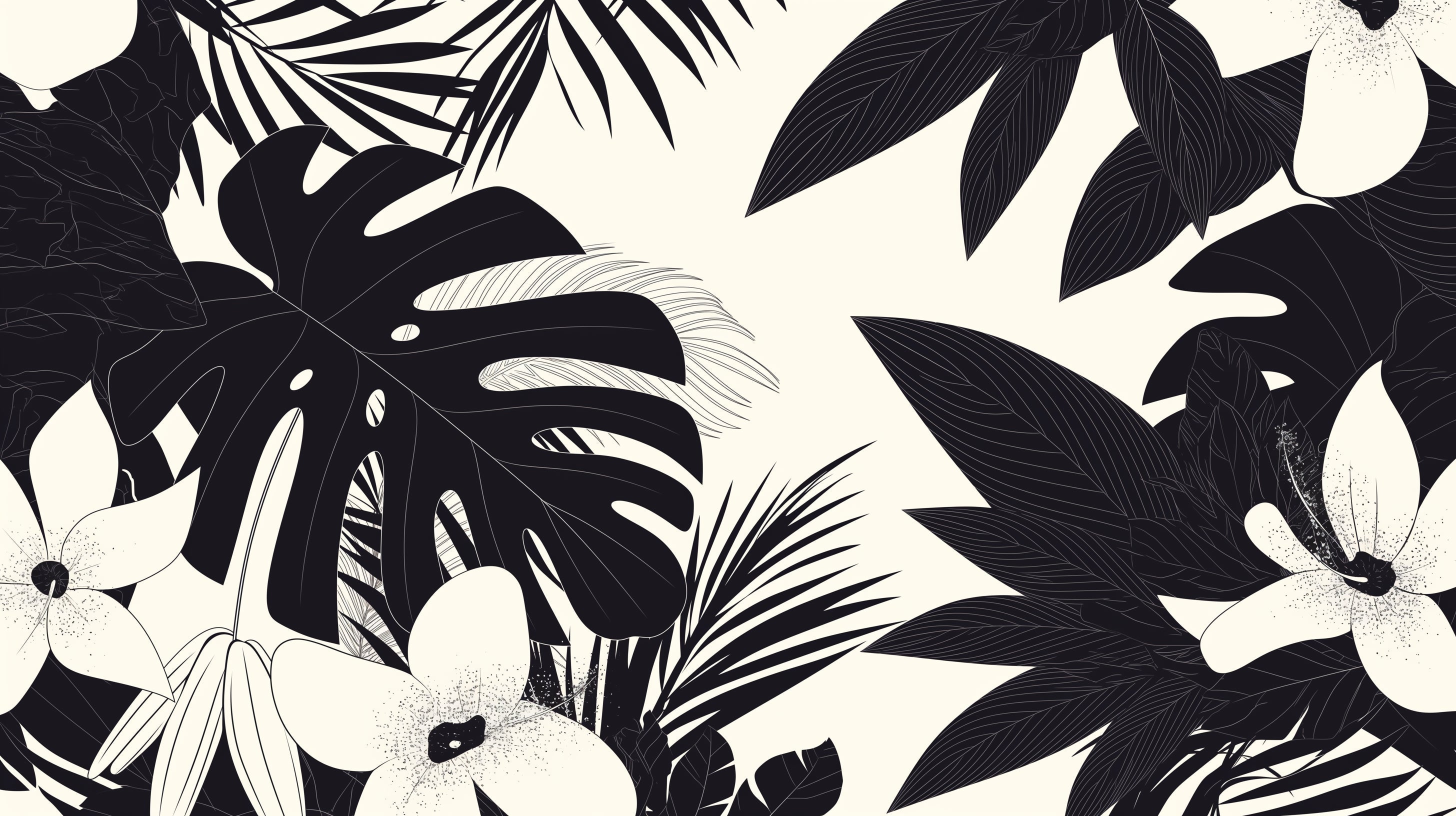 Transform any space into a contemporary tropical haven with this black and white botanical wallpaper. The monochromatic palette offers versatile styling possibilities while the tropical foliage design brings organic energy to interiors. This mural creates an impressive feature wall in living spaces, bedrooms, or office environments, pairing beautifully with both minimalist décor and rich textural elements.