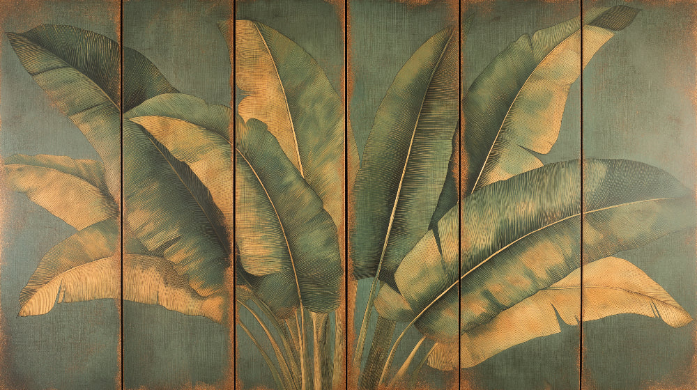 Tropical Mural Wallpaper | Golden Banana Leaves on Emerald