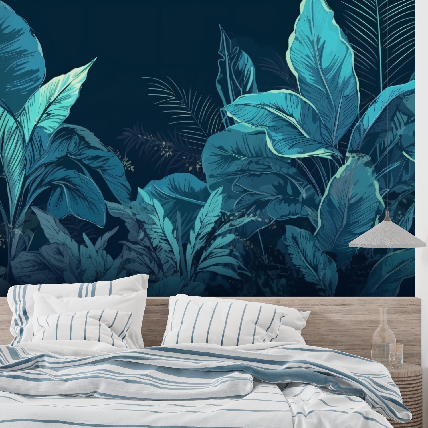 Each teal jungle mural creates a fresh, living backdrop for your space.