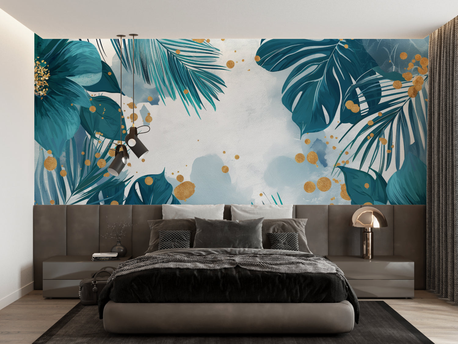 Transform your space with this luxury tropical wallpaper that brings the perfect balance of nature and elegance to any interior. The palm leaf mural creates an atmosphere of sophisticated tranquility, ideal for living rooms, dining spaces, or bedrooms seeking that perfect blend of exotic charm and contemporary style. The combination of teal and gold details ensures a timeless appeal while maintaining a fresh, modern aesthetic.