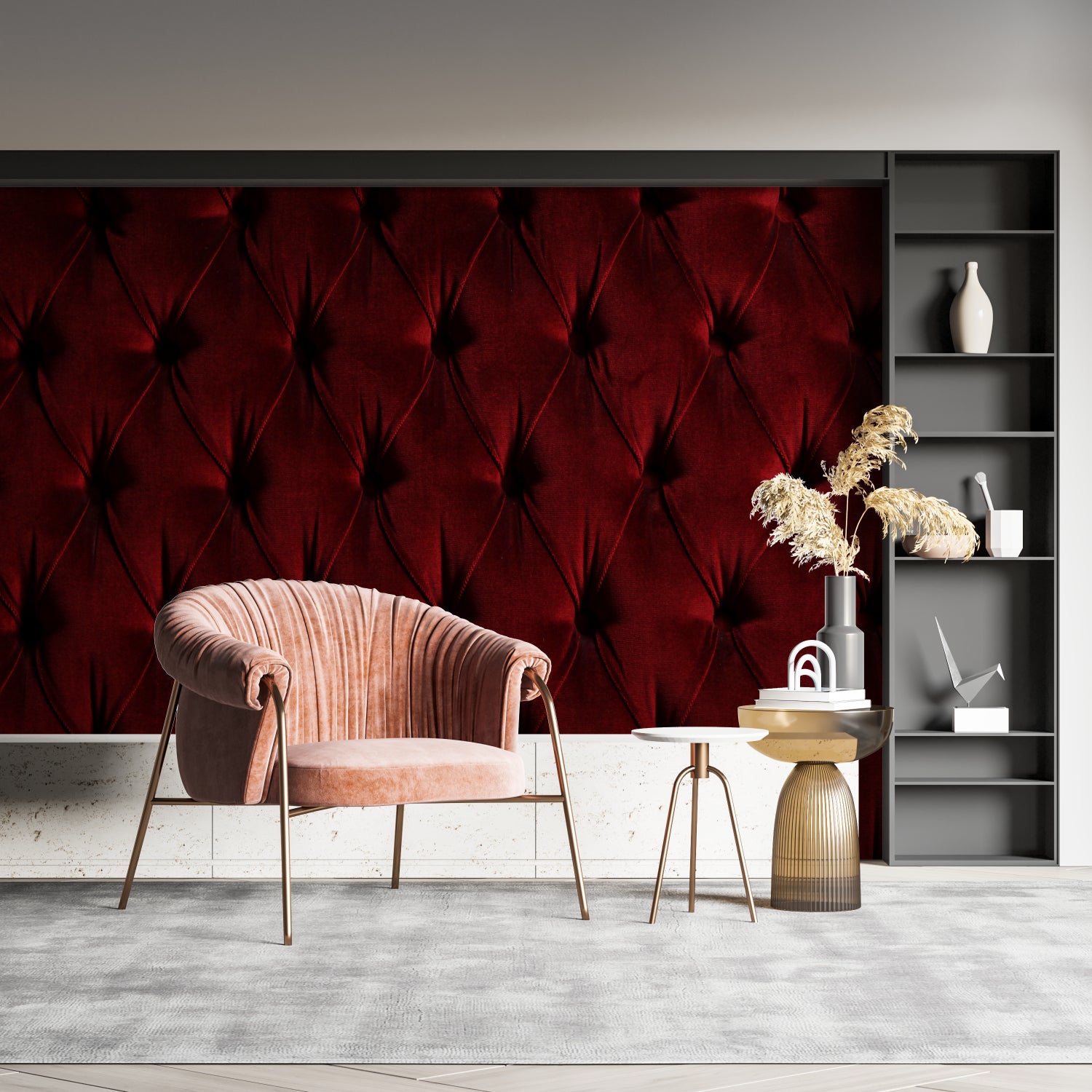 Tufted Mural Wallpaper | Burgundy Velvet 3D Pattern