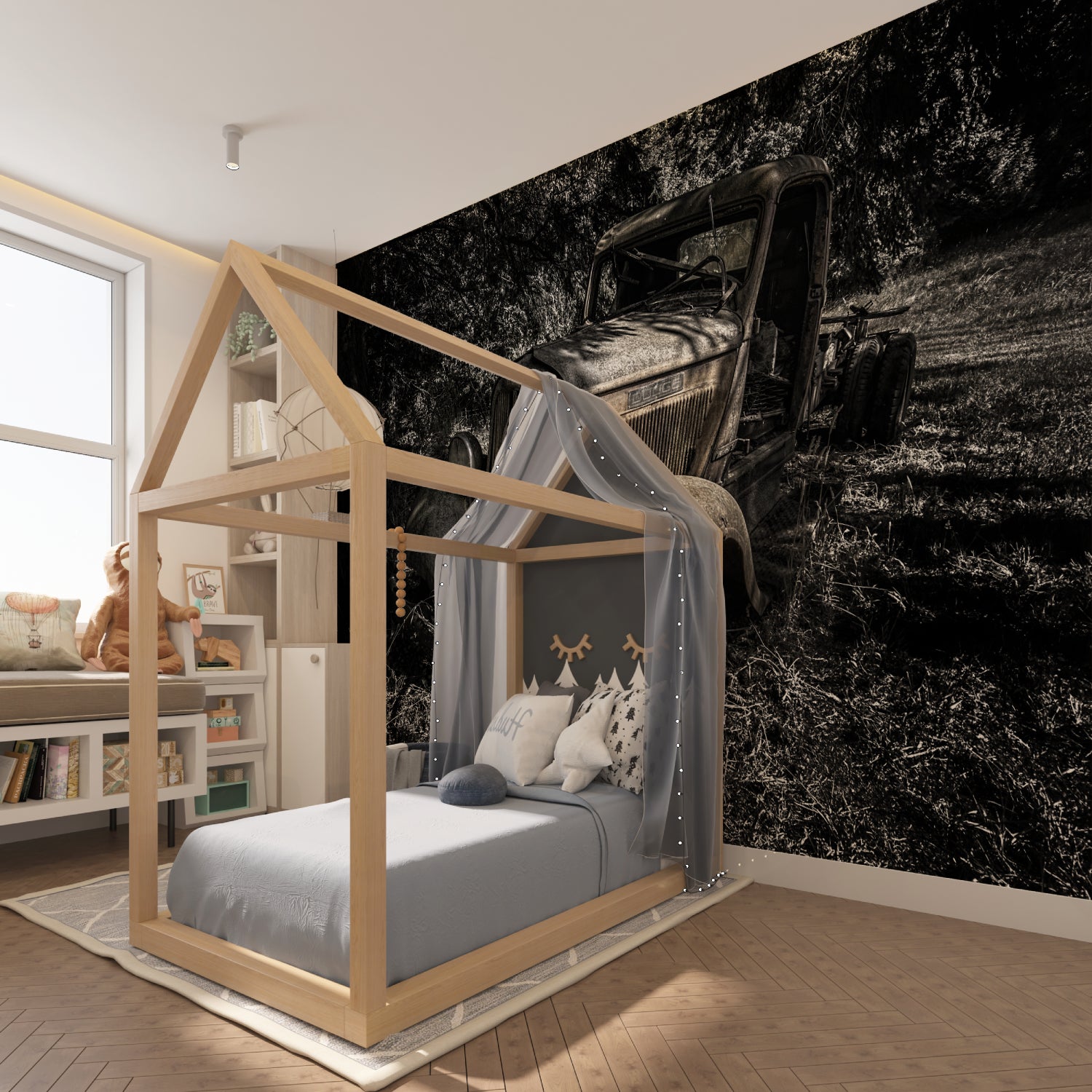 Transform any space with this classic car wall mural that bridges past and present in sophisticated style. The black and white vintage wallpaper serves as an artistic backdrop that adds character and visual interest to various settings, from modern offices to industrial-style living spaces. Its versatile design creates an immersive atmosphere that resonates with both automotive enthusiasts and lovers of distinctive interior design.