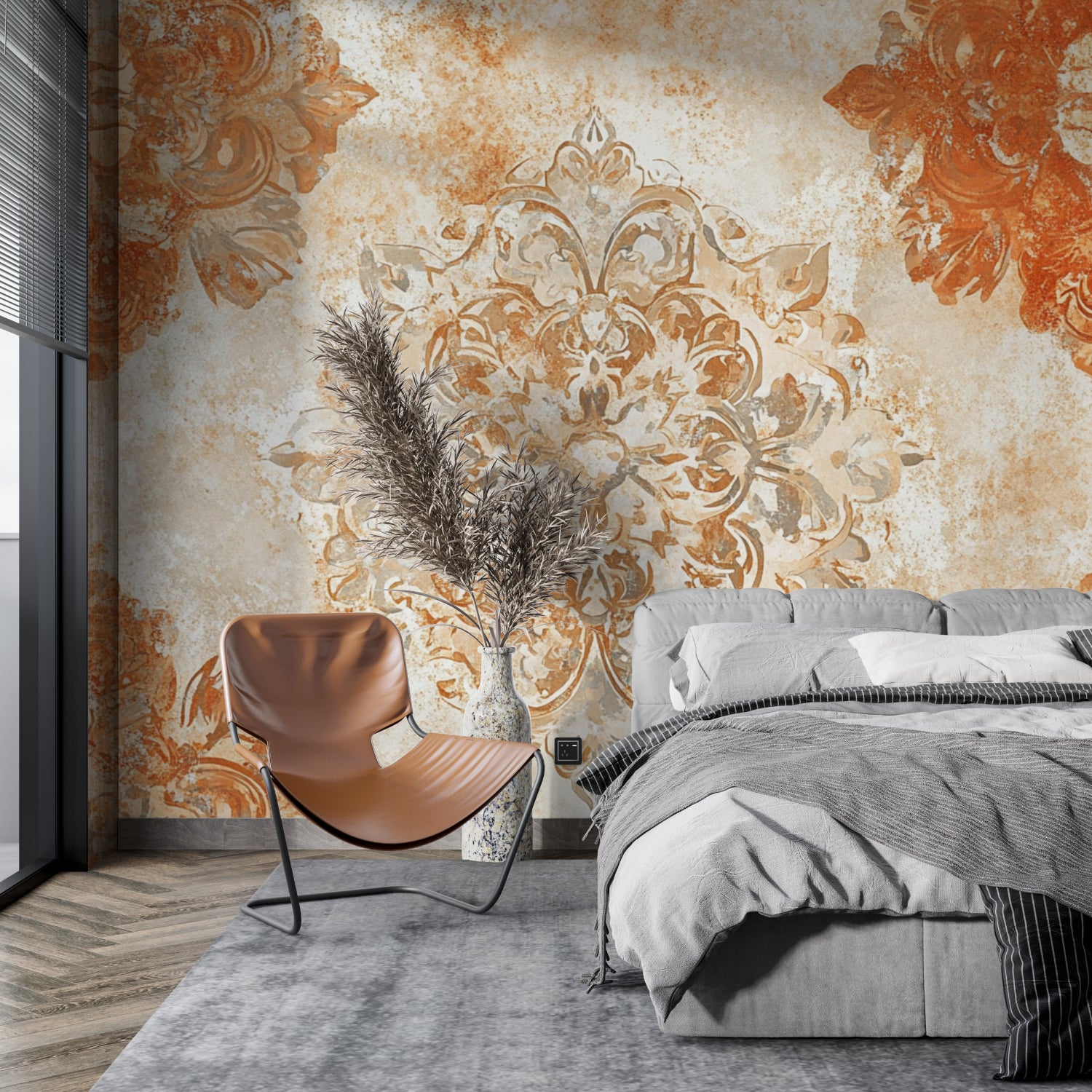 Transform your space with this terracotta damask wallpaper that bridges classical and contemporary styles. The vintage pattern wallpaper creates an atmosphere of refined luxury and warmth, making it an ideal choice for living areas, bedrooms, or dining spaces where it can serve as both a statement piece and a harmonious backdrop for your interior design vision.