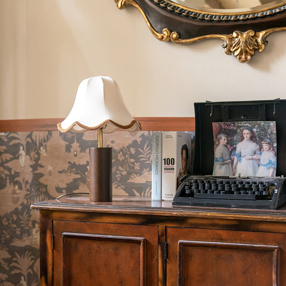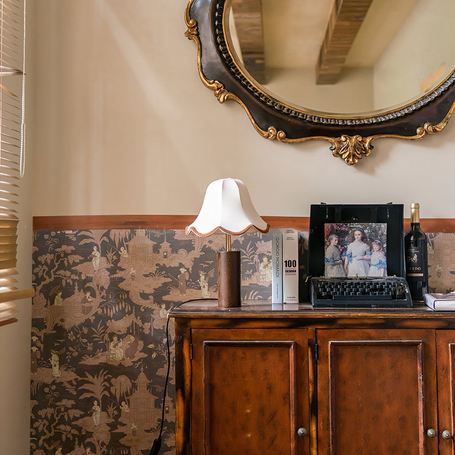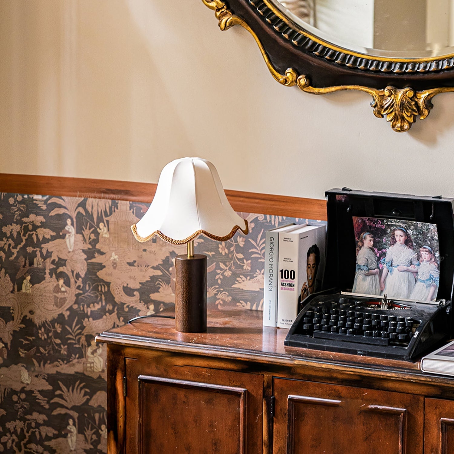 Bring an element of classic elegance into your home with this table lamp. Featuring a beautifully crafted fabric lampshade with delicate scalloped edges, combined with a sturdy wooden base, this refined lamp blends traditional charm with modern sophistication, making it a versatile addition to any room.