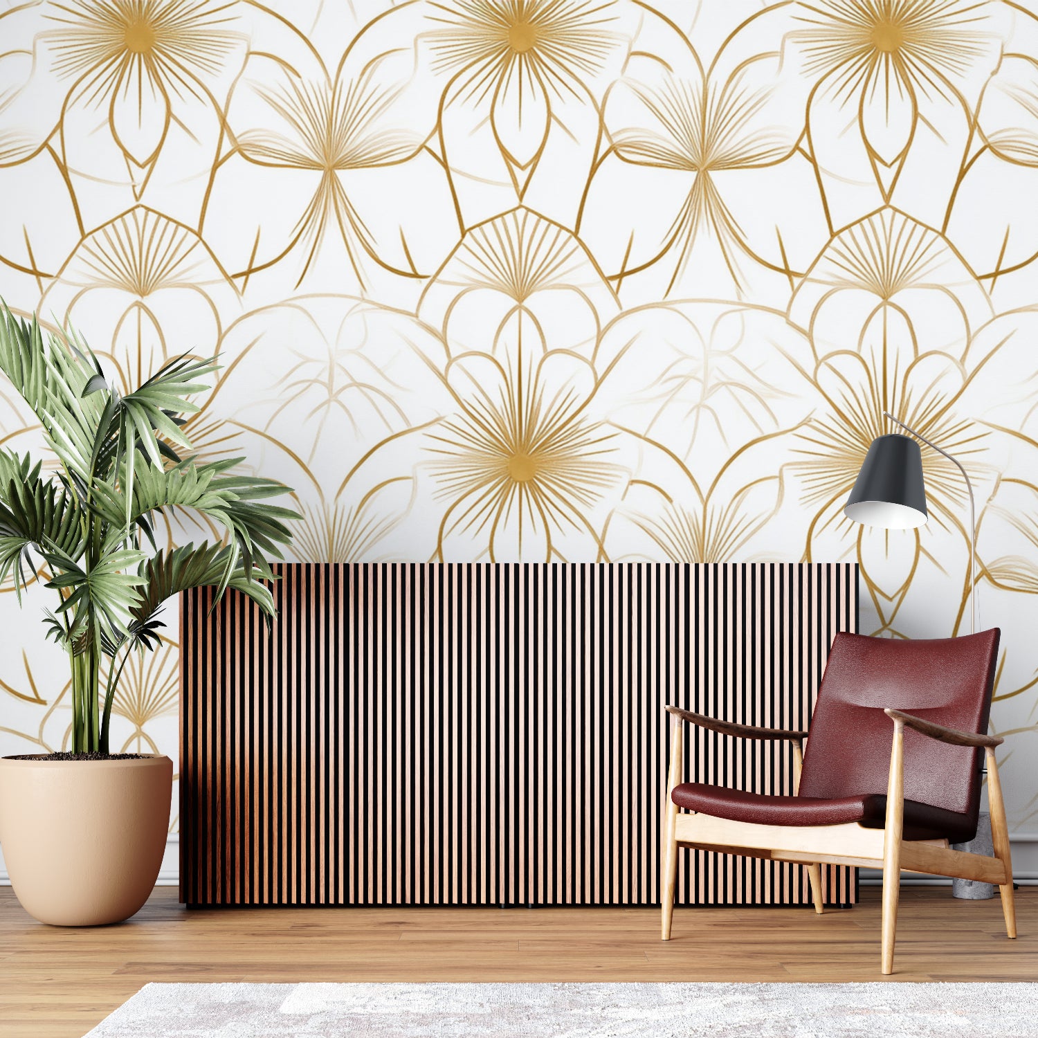 Golden Art Deco Floral Wall Mural