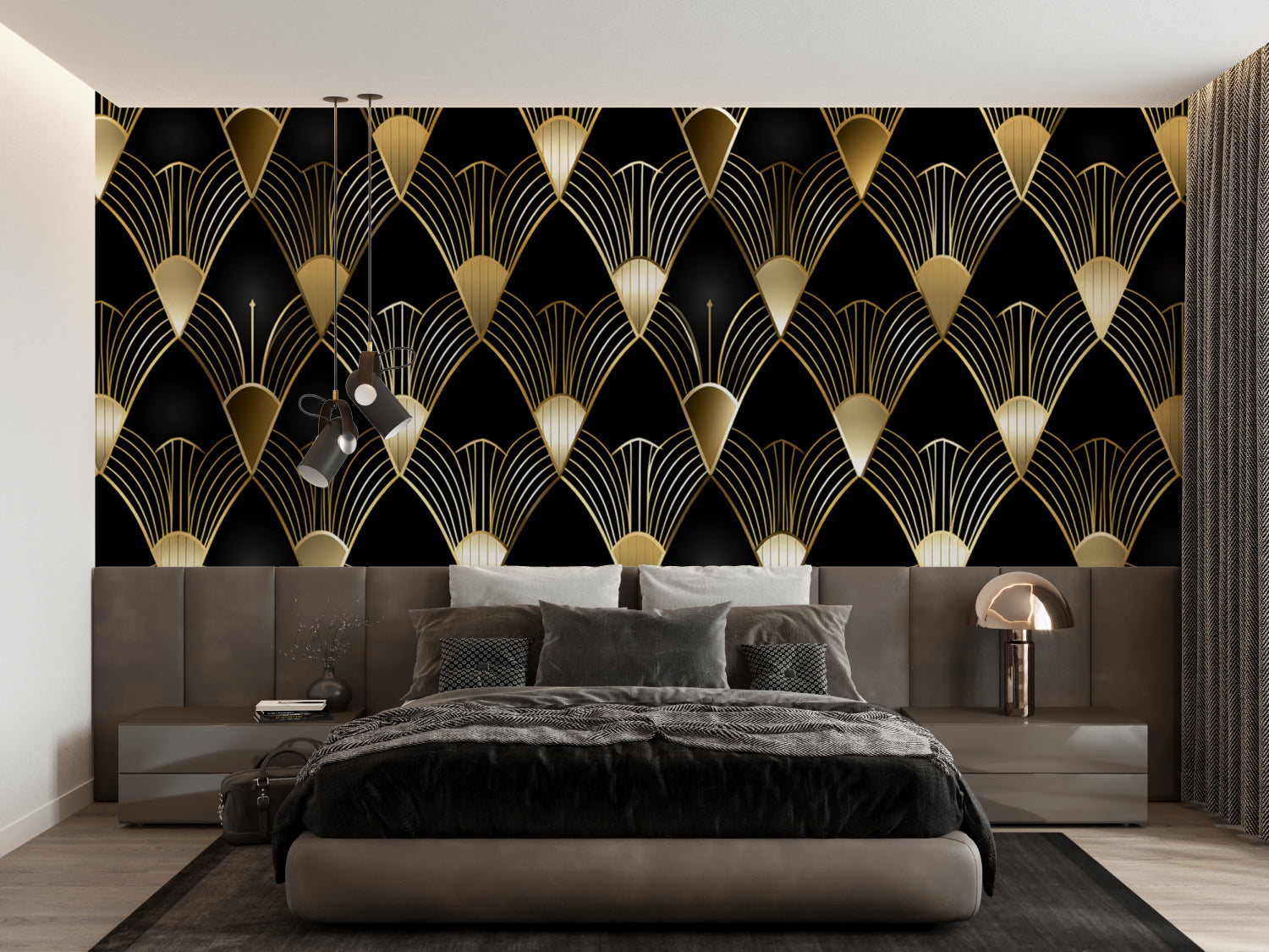 Art Deco Tapet | Svart och Guld Fläktmönster