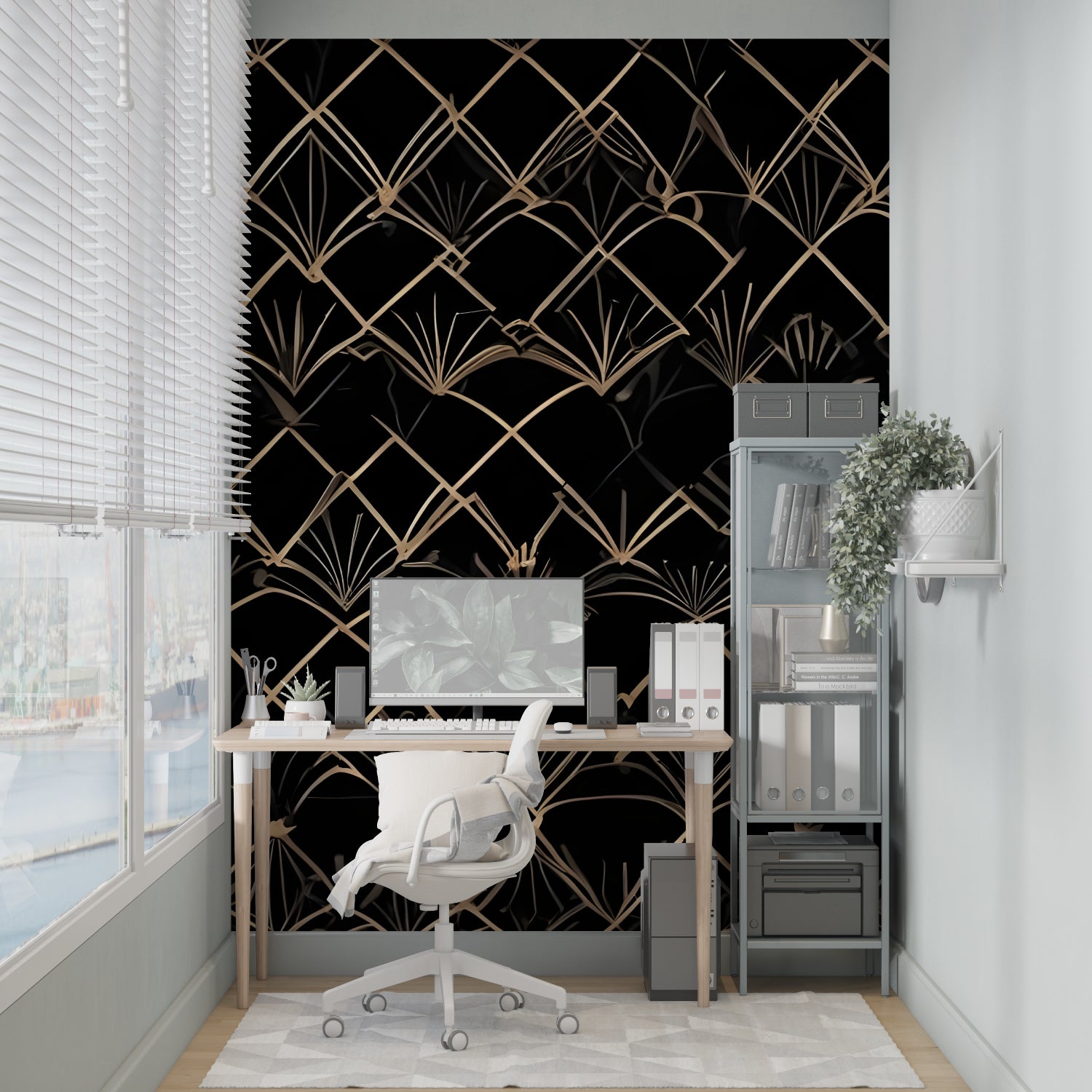 Art Deco Tapet | Svart och Guld Geometriskt Mönster
