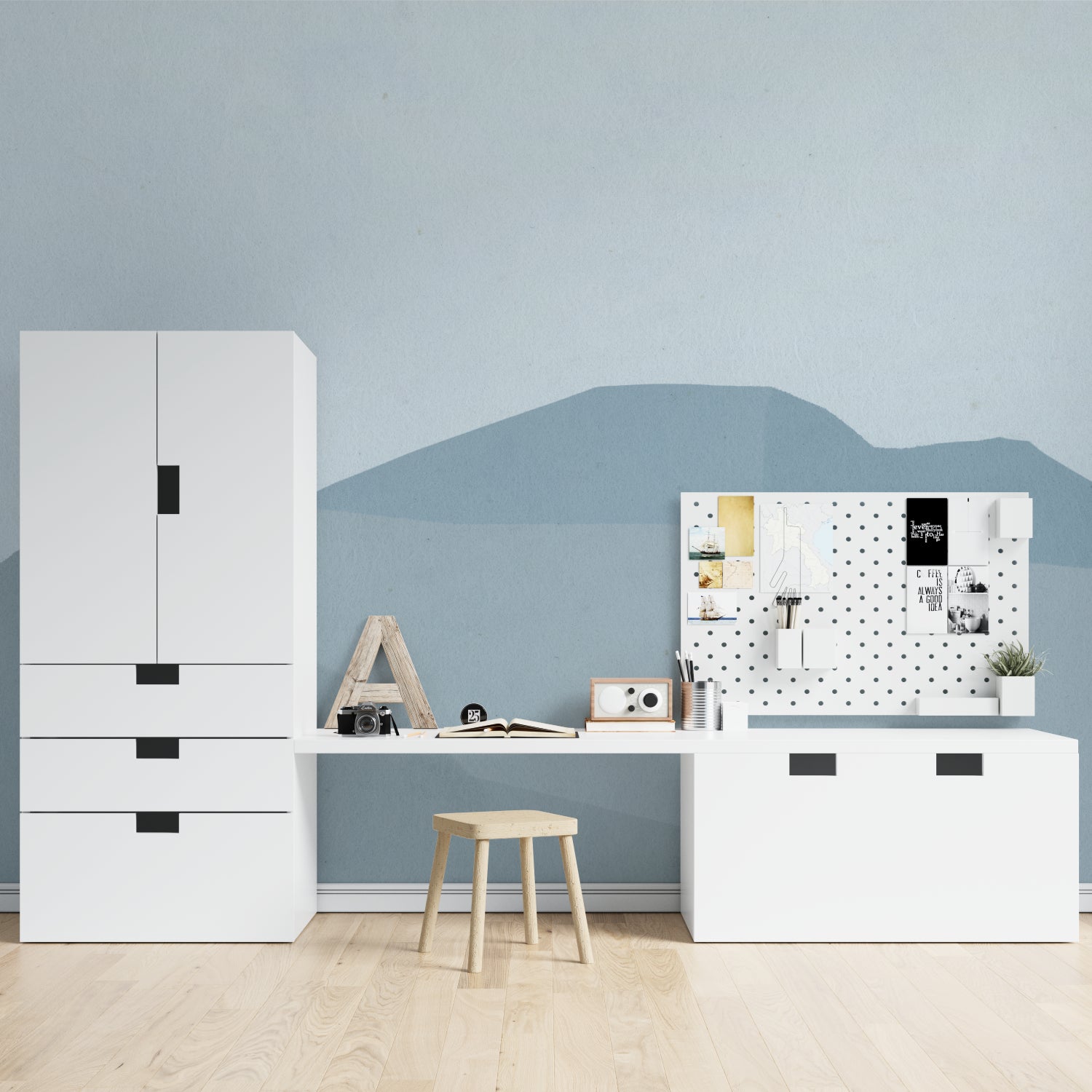 Förvandla vilket rum som helst till en fridfull fristad med denna minimalistiska landskapstapet. Perfekt för barnrum, barnkammare eller lekrum, erbjuder denna moderna fjällmålning en sofistikerad bakgrund som växer med ditt barn. Den mångsidiga designen främjar både avkoppling och fantasi samtidigt som den behåller en elegant estetik som kompletterar olika inredningsstilar och möbelarrangemang.