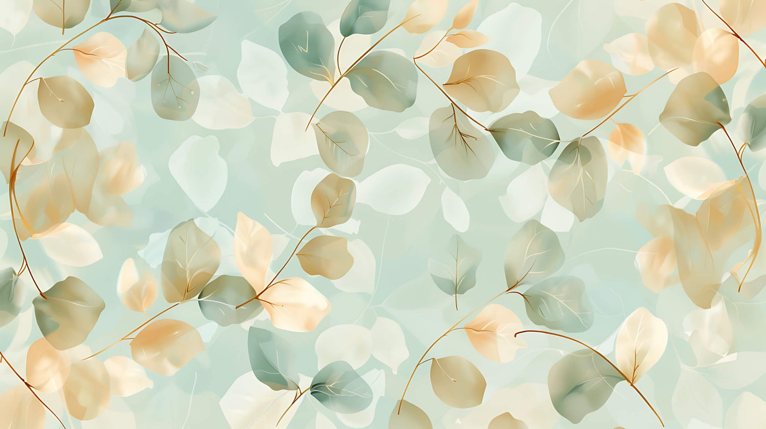 Tapet med lövmotiv | Mjuk mint och guldblad design