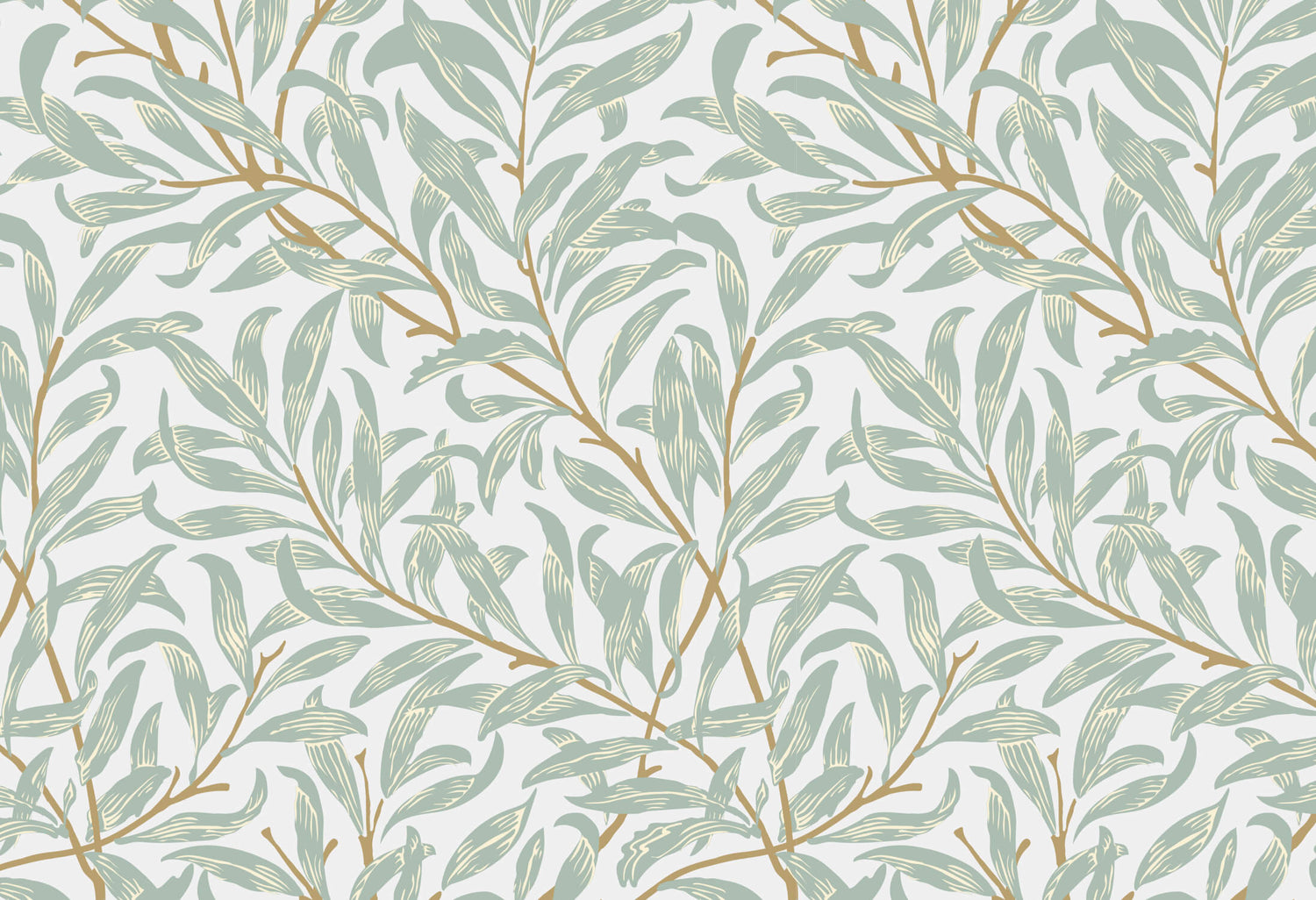 Denna botaniska tapet visar en elegant sammansättning av salviagröna blad som flyter graciöst mot en mjuk vit bakgrund. Det sofistikerade mönstret har delikata lövgrenar med gyllenbruna stjälkar, vilket skapar en naturlig rytm över väggen. Den bladmönstrade tapeten uppvisar en perfekt balans mellan konstnärligt uttryck och botanisk precision, där varje blad är återgivet i mjuka, dämpade toner som fångar essensen av naturlig ro.