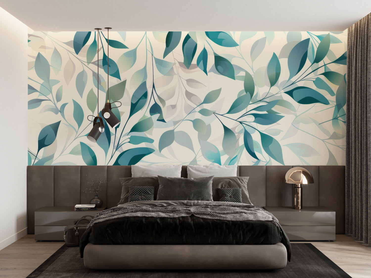This teal leaf wallpaper brings the garden's beauty inside your home.