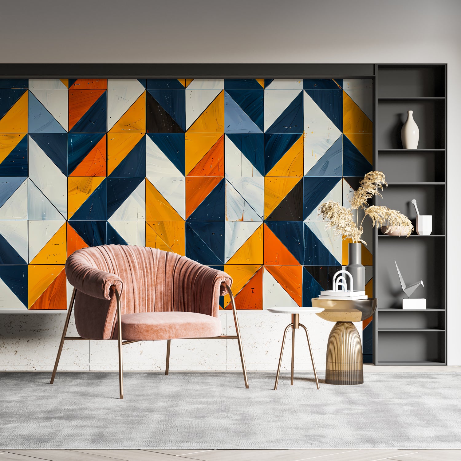 Perfect geometric wall mural for open-plan living.