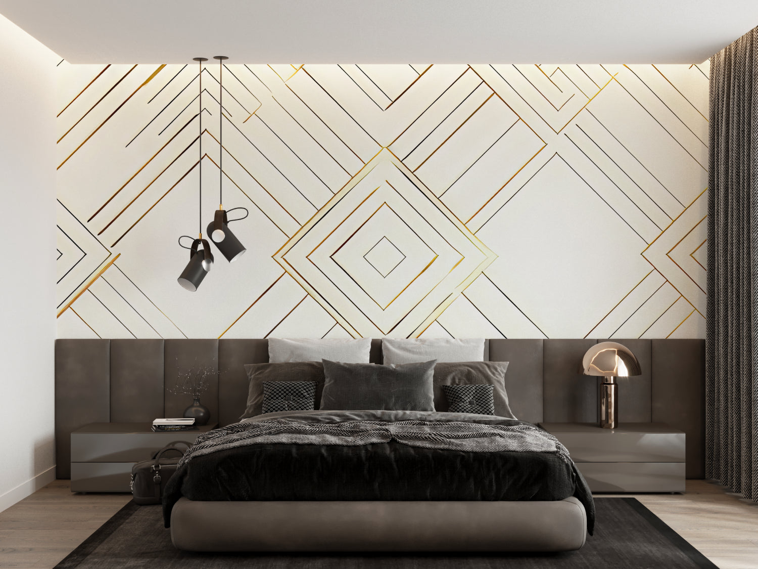 The clean lines and golden accents make your geometric pattern wallpaper stand out.
