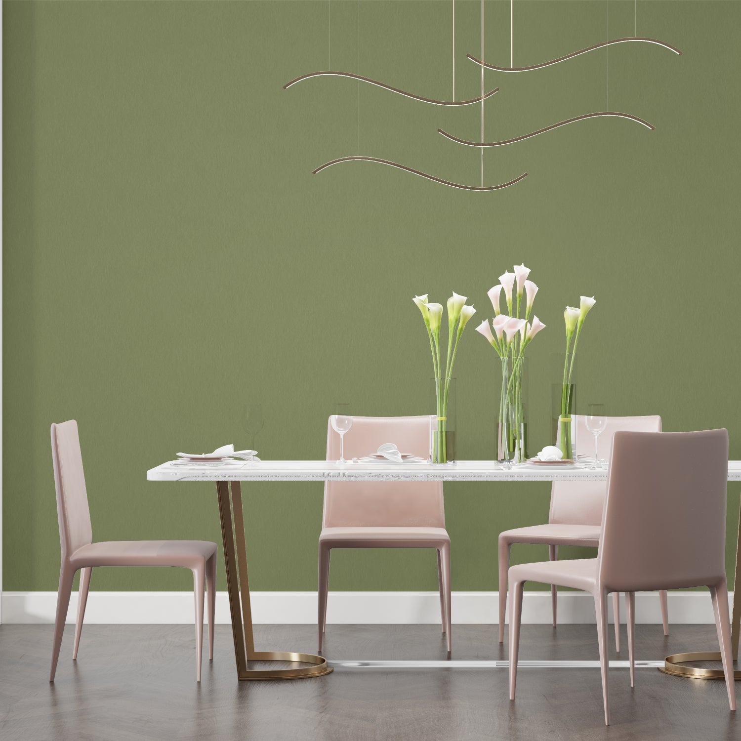 Denna gröna väggmålning förkroppsligar modern sofistikering med sin rika khakifärg, och erbjuder en sömlös blandning av naturlig värme och samtida stil. Den solida gröna tapeten skapar en förfinad bakgrund som utstrålar lugn och diskret elegans, medan dess släta, enhetliga textur ger en ren duk som förstärker djupet och dimensionen i vilket rum som helst.