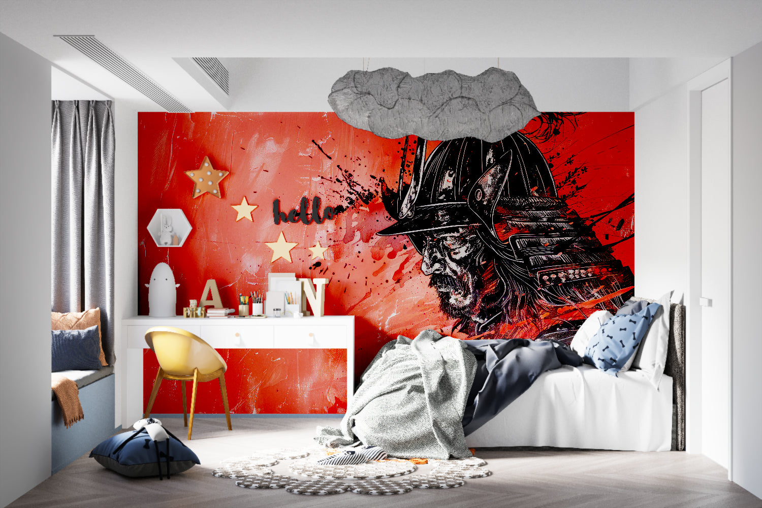 This Japanese warrior wallpaper brings raw energy to your walls.