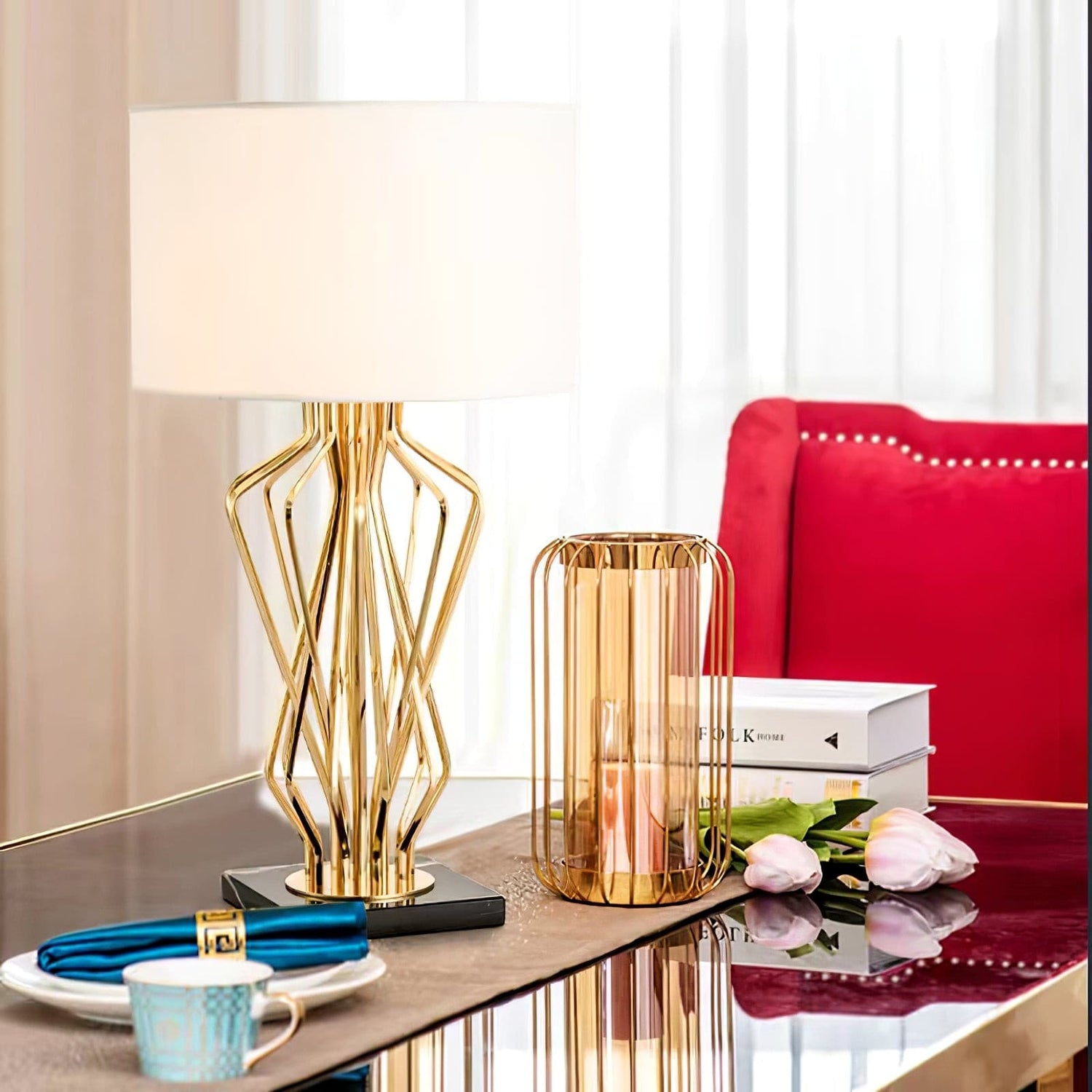 Modern bordslampa | Geometrisk bas i guldmetall - Diameter 35cm x Höjd 65cm / Vit är restnoterad och kommer att skickas så snart den finns i lager igen.