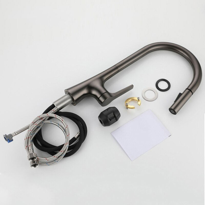 Denna svanhals köksblandare med utdragbar pip kombinerar elegant minimalism med praktisk funktionalitet. Den indragbara sprayhuvudet sträcker sig upp till 35 cm och erbjuder obegränsad rörelsefrihet för att tvätta grönsaker, disk eller fylla kastruller med lätthet.