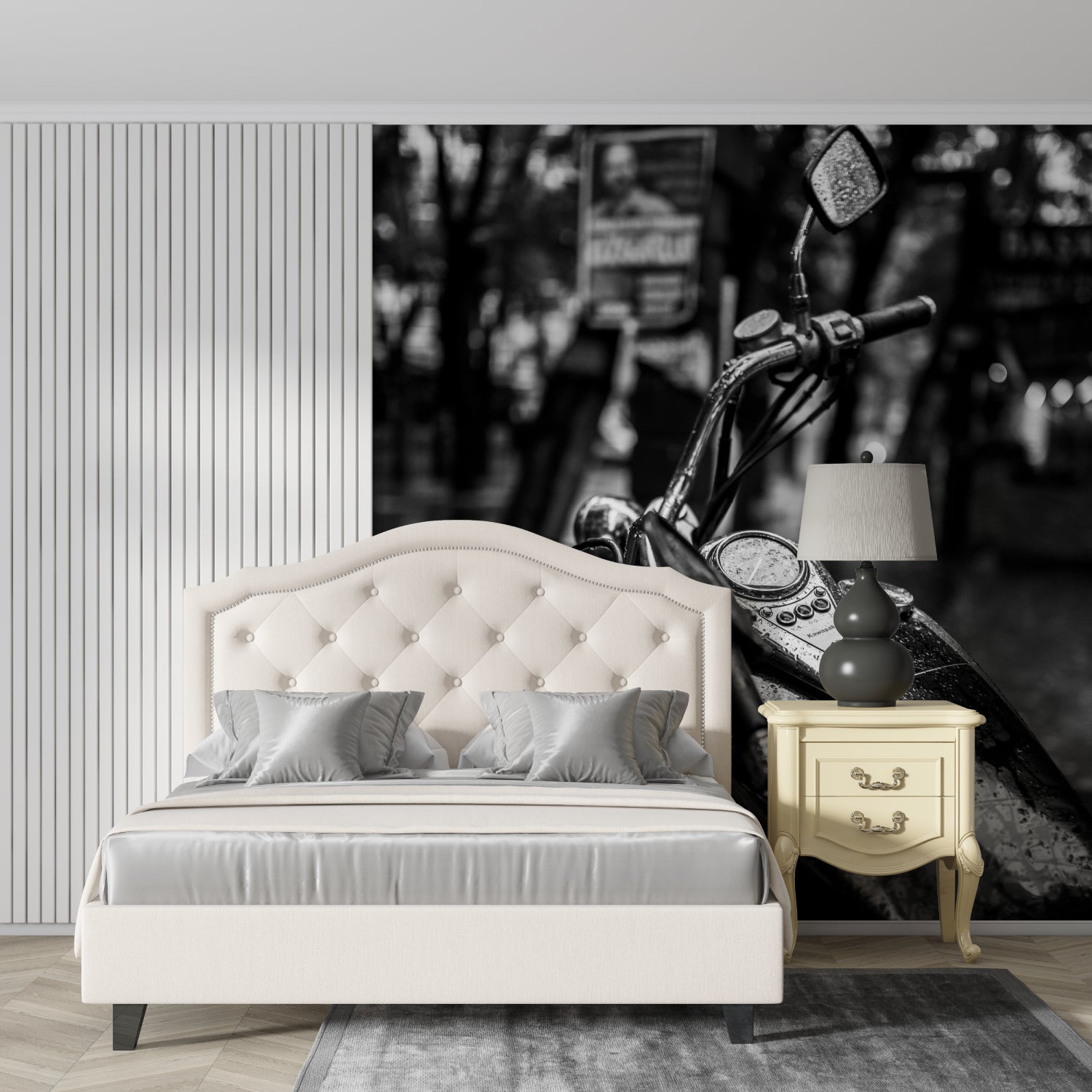 Förvandla vilket utrymme som helst till ett uttryck för djärv design med denna urban fotografi tapet. Den dramatiska kompositionen och den professionella svartvita behandlingen gör denna moderna motorcykelväggmålning särskilt lämplig för samtida interiörer, och tillför djup och karaktär samtidigt som den behåller en elegant atmosfär. Dess tidlösa attraktionskraft fungerar harmoniskt med både minimalistiska och industriella designscheman, och skapar en sofistikerad bakgrund som väcker samtal och beundran.