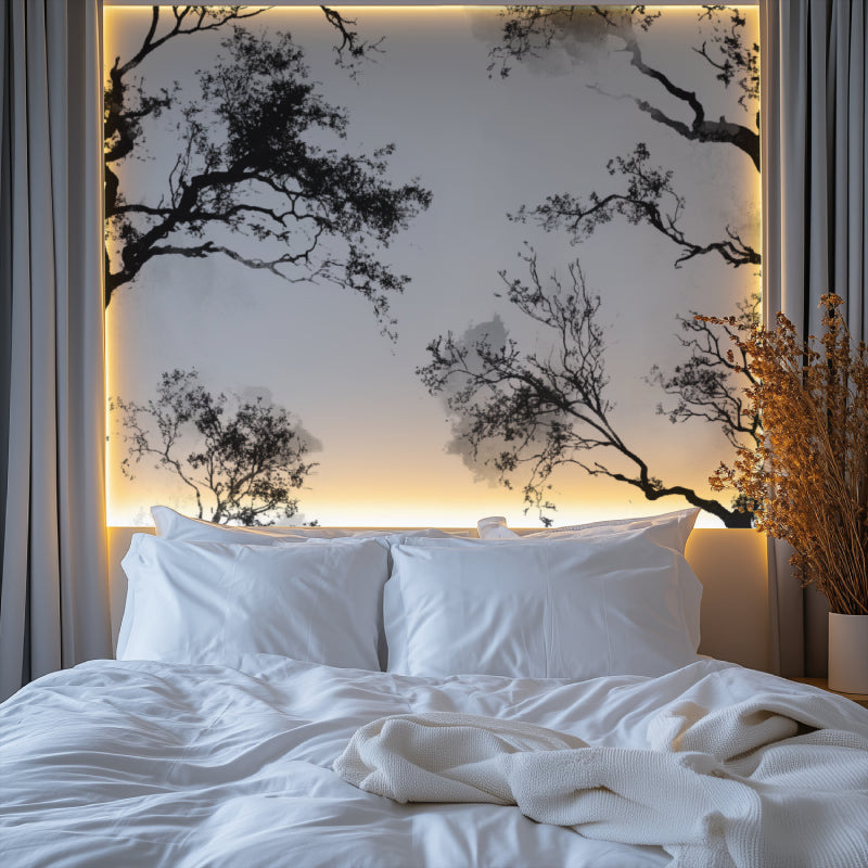 The striking design of this tree silhouette wallpaper works in living rooms and offices alike.