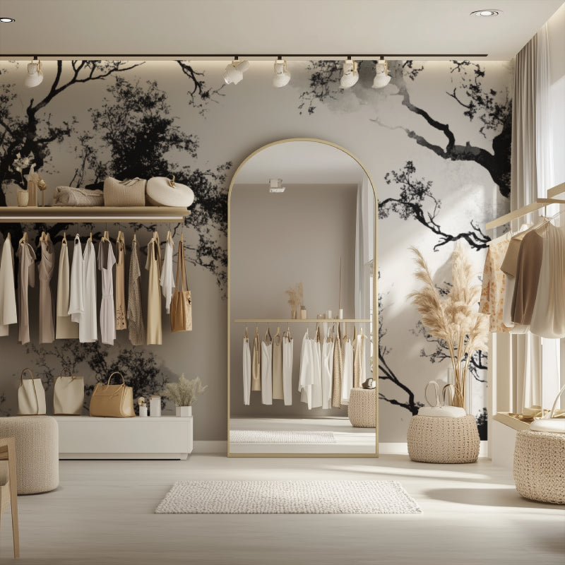 The clean lines and bold contrast of this modern tree wallpaper catch every eye.