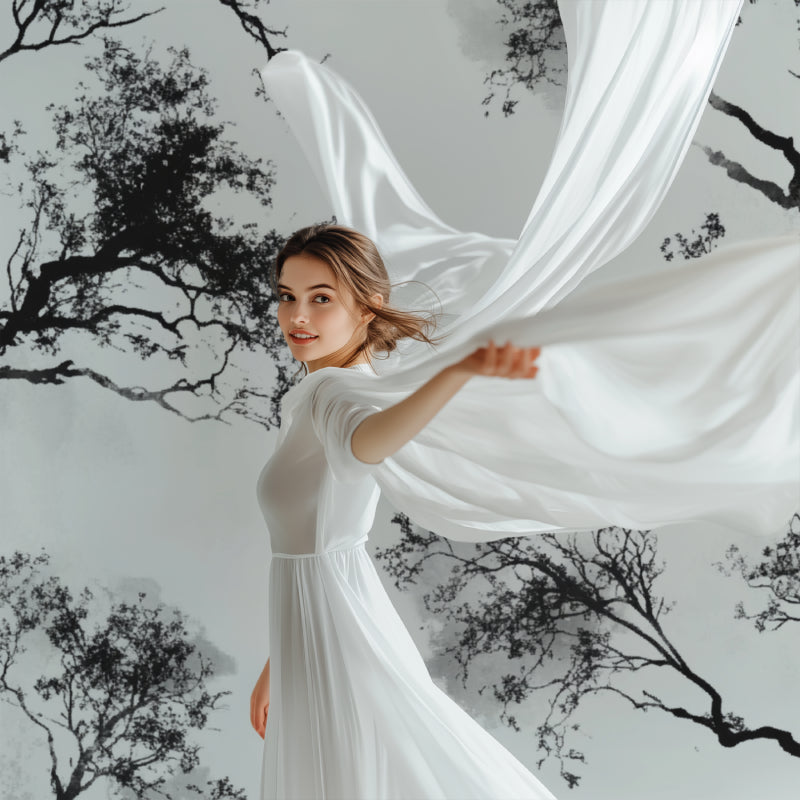 Denna svarta trädtapet visar en elegant komposition av graciösa trädsilhuetter mot en lugn vit bakgrund. De intrikata grenarna skapar ett sofistikerat skuggspel, medan de delikata lövdetaljerna tillför djup och rörelse till designen. Den monokroma trädmuralen fångar naturens organiska skönhet med sina skarpa kontraster och konstnärliga tolkning.