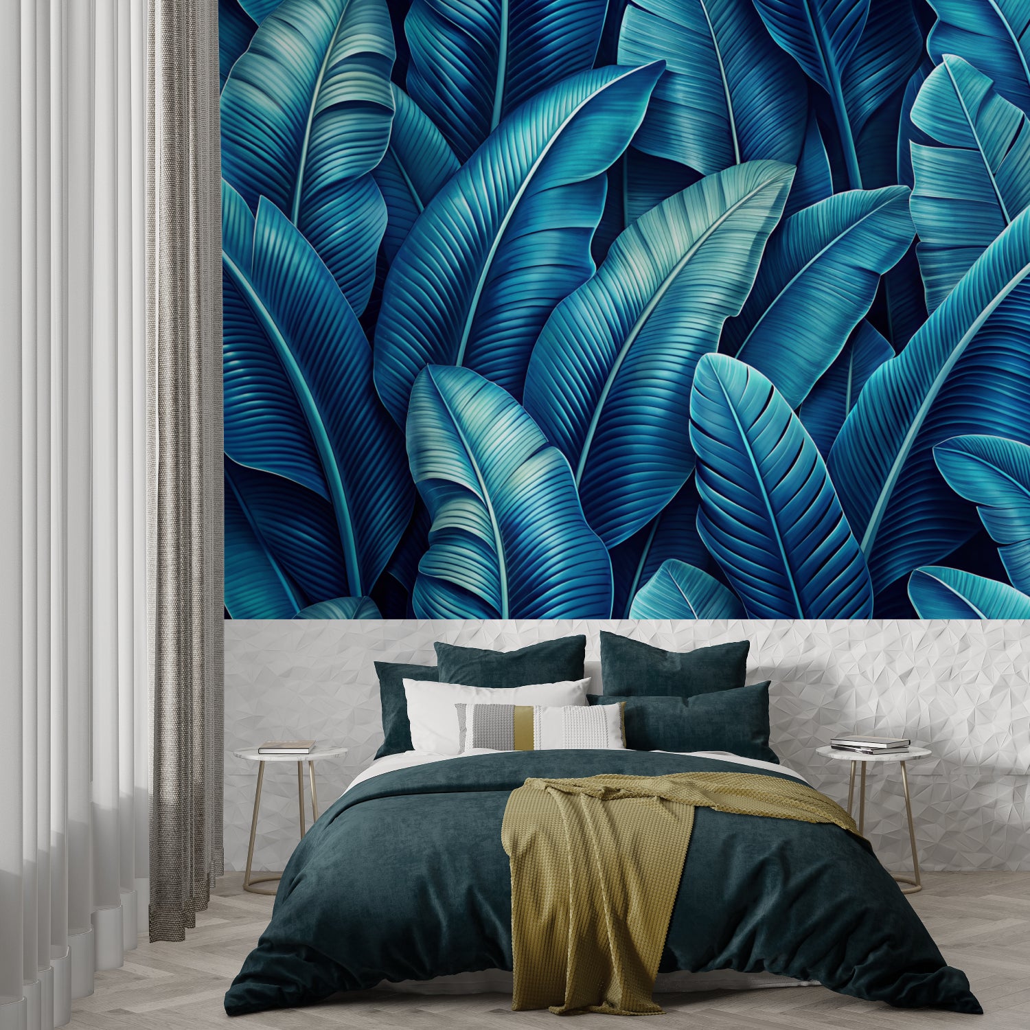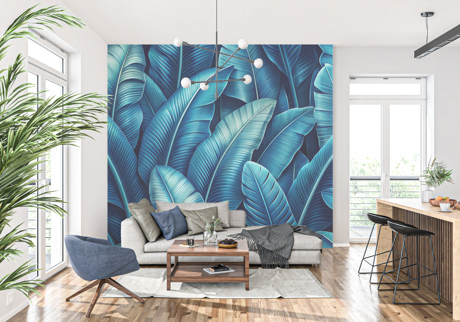 Tropisk lövverk tapet | Stor design med blå bananblad